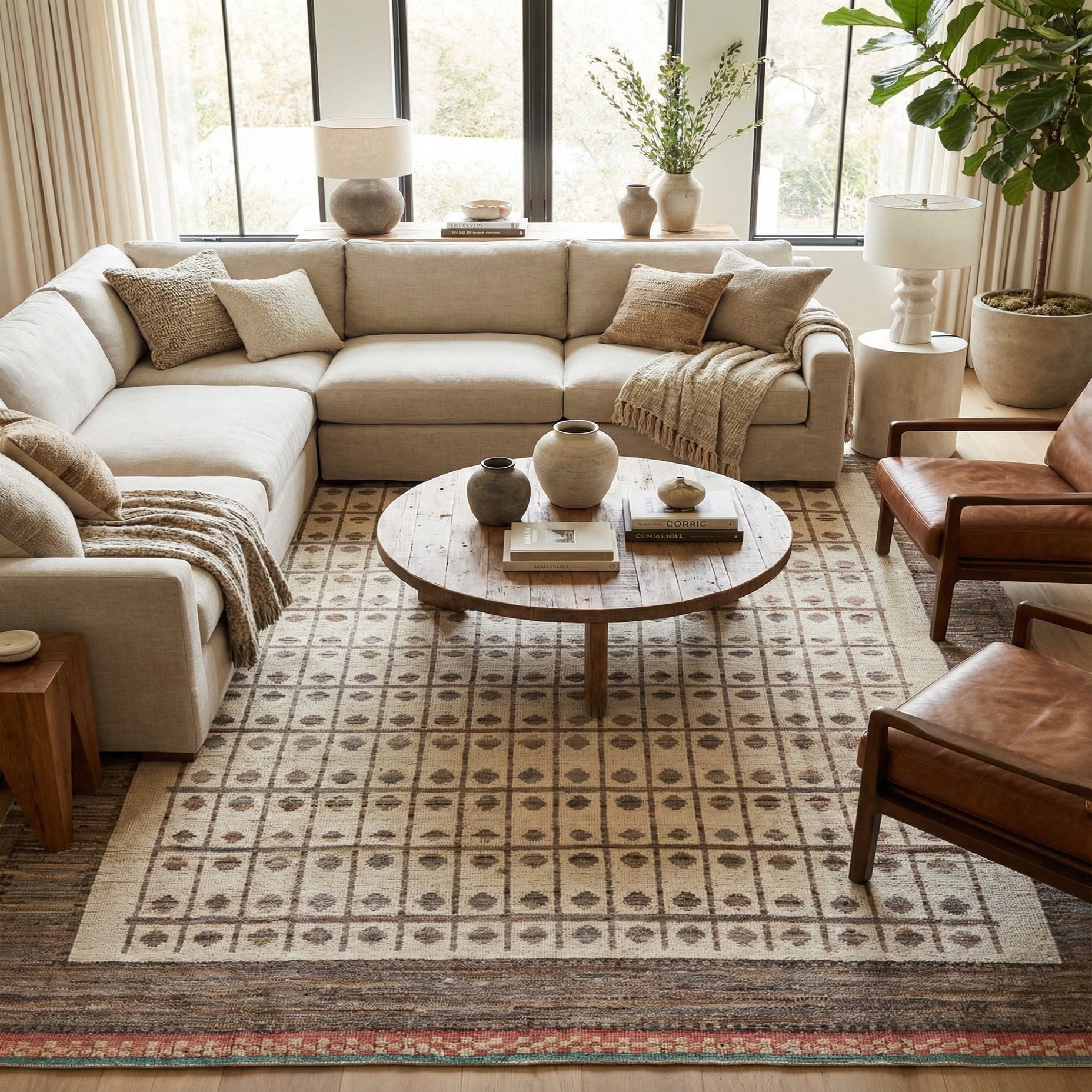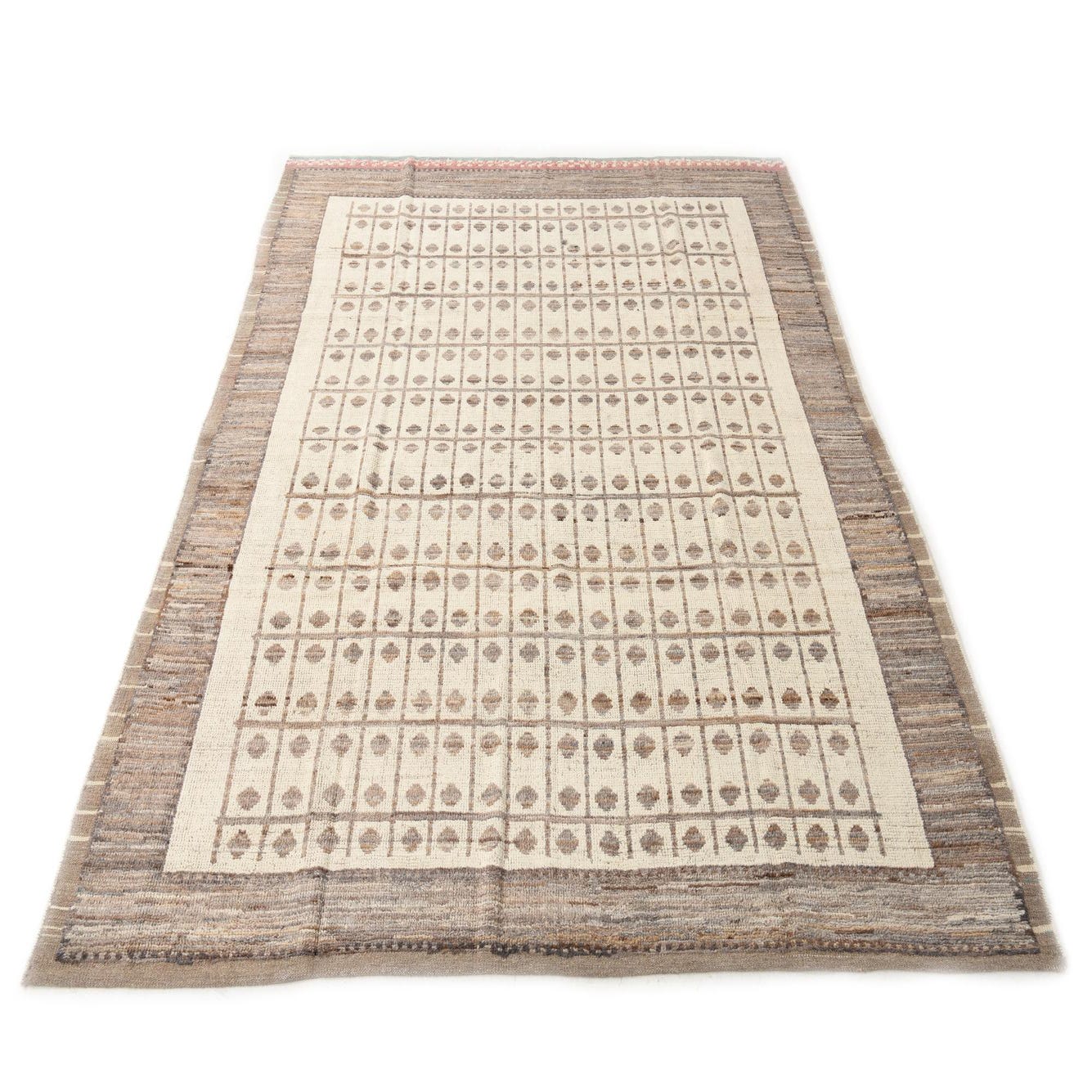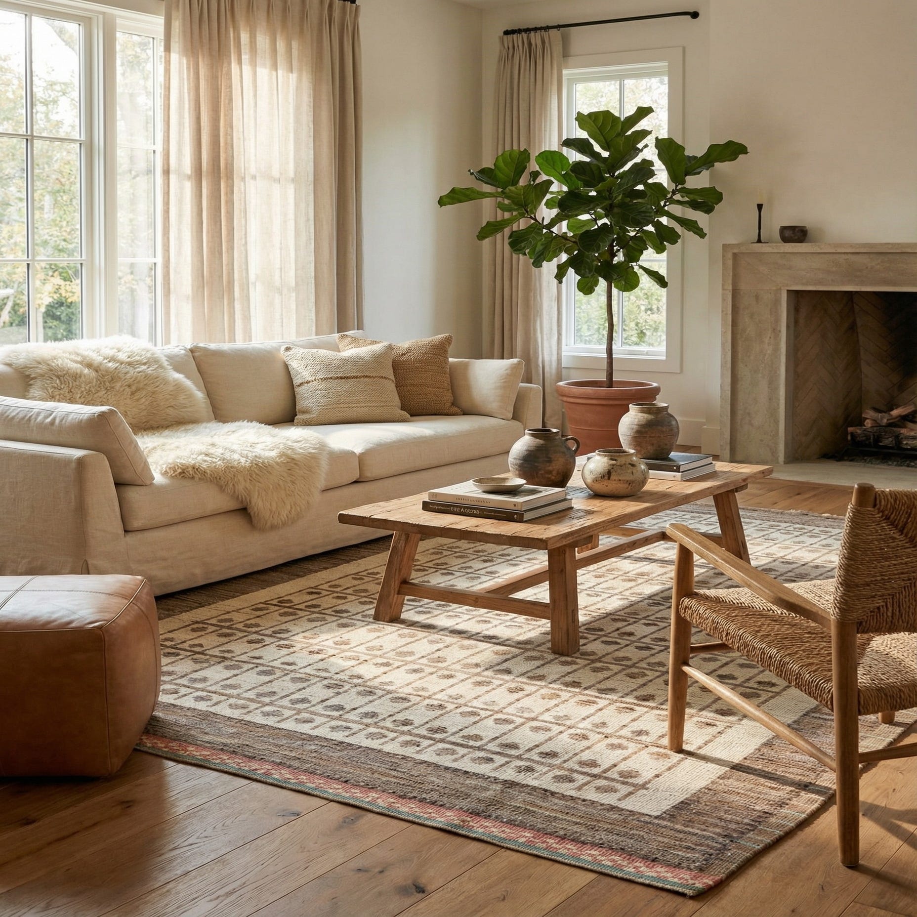 Suited for an array of decor styles, from contemporary to traditional, this rug can serve as a neutral foundation or a subtle statement piece. Consider placing it in a living room under a coffee table, anchoring a dining area, or adding a layer of sophistication to a bedroom setup. Its natural colors and timeless pattern ensure that this rug will complement furnishings in neutral tones, stand out elegantly against darker wood floors, or blend seamlessly with a more eclectic aesthetic.