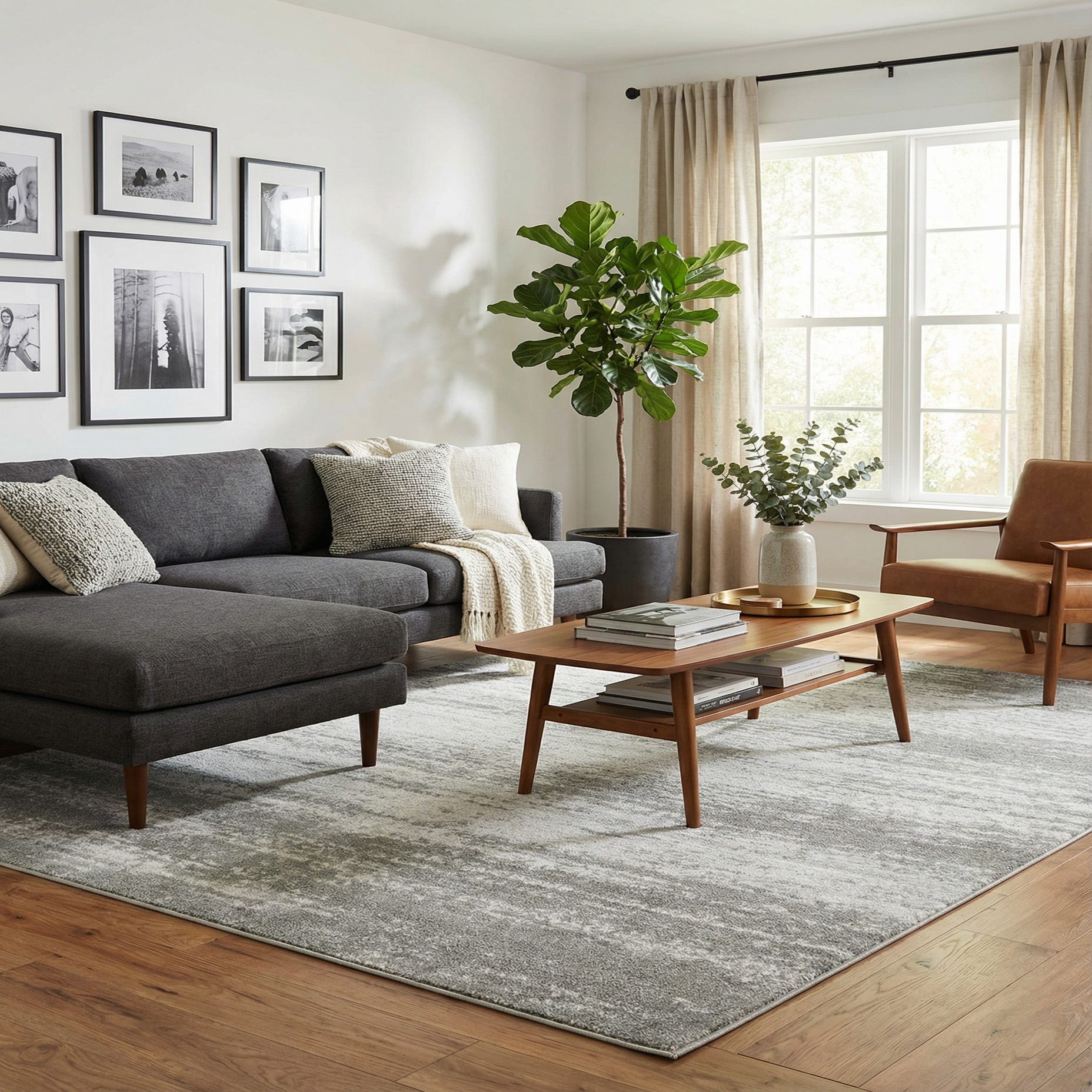 Its stain-resistant properties make this rug a practical choice for high-traffic areas, while the shed-free feature ensures easy maintenance and enduring visual appeal. The subtle, understated design makes it an adaptable addition to contemporary, minimalist, or Scandinavian-inspired interiors. This rug can effortlessly anchor a living room seating area, bring balance to a bedroom, or serve as a sophisticated backdrop in a home office. The neutral palette provides a serene foundation that can be built upon with various decor elements, allowing for versatility within transitional spaces.