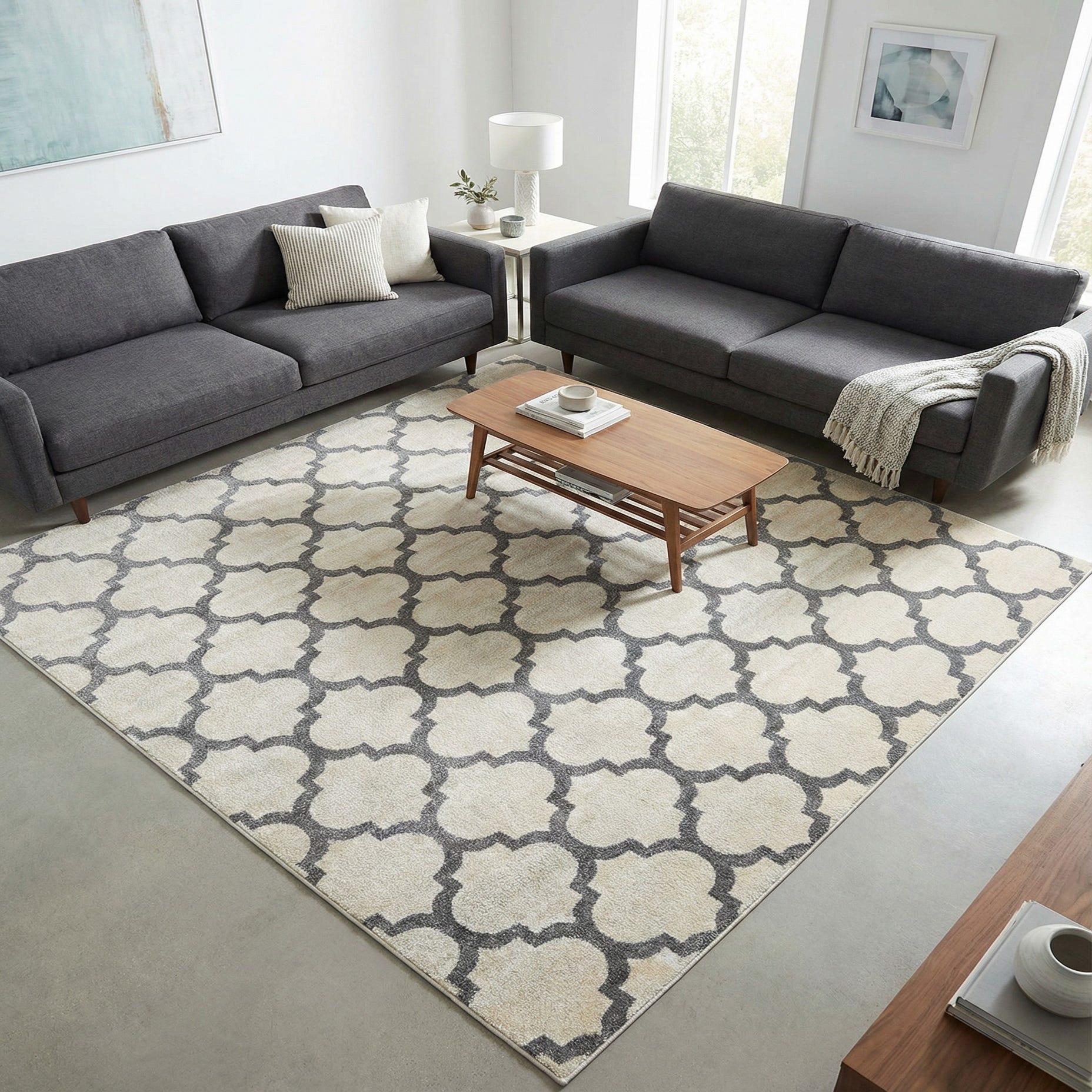 This versatile style fits well in transitional and contemporary interiors — place it beneath a living room seating group to anchor the space, beneath a dining table to add pattern without overwhelming, or layered in a bedroom for a calm foundation. Pair with light wood or painted furniture, textured linens, and matte metal accents for a relaxed modern look, or use it to soften a monochrome scheme where the pattern provides visual interest without competing with other elements.
