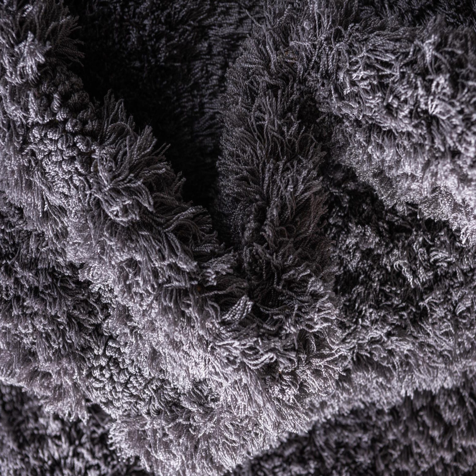 A deep Dark Gray background anchors this plush shag runner, with subtle tonal variations that catch the light and add visual depth. A low-contrast diamond lattice pattern is woven into the pile, creating a relaxed geometric rhythm without sharp edges or high contrast. The dense, long polypropylene fibers feel soft and springy underfoot, with a gentle sheen that highlights the pile direction and gives the surface a cozy, tactile quality.