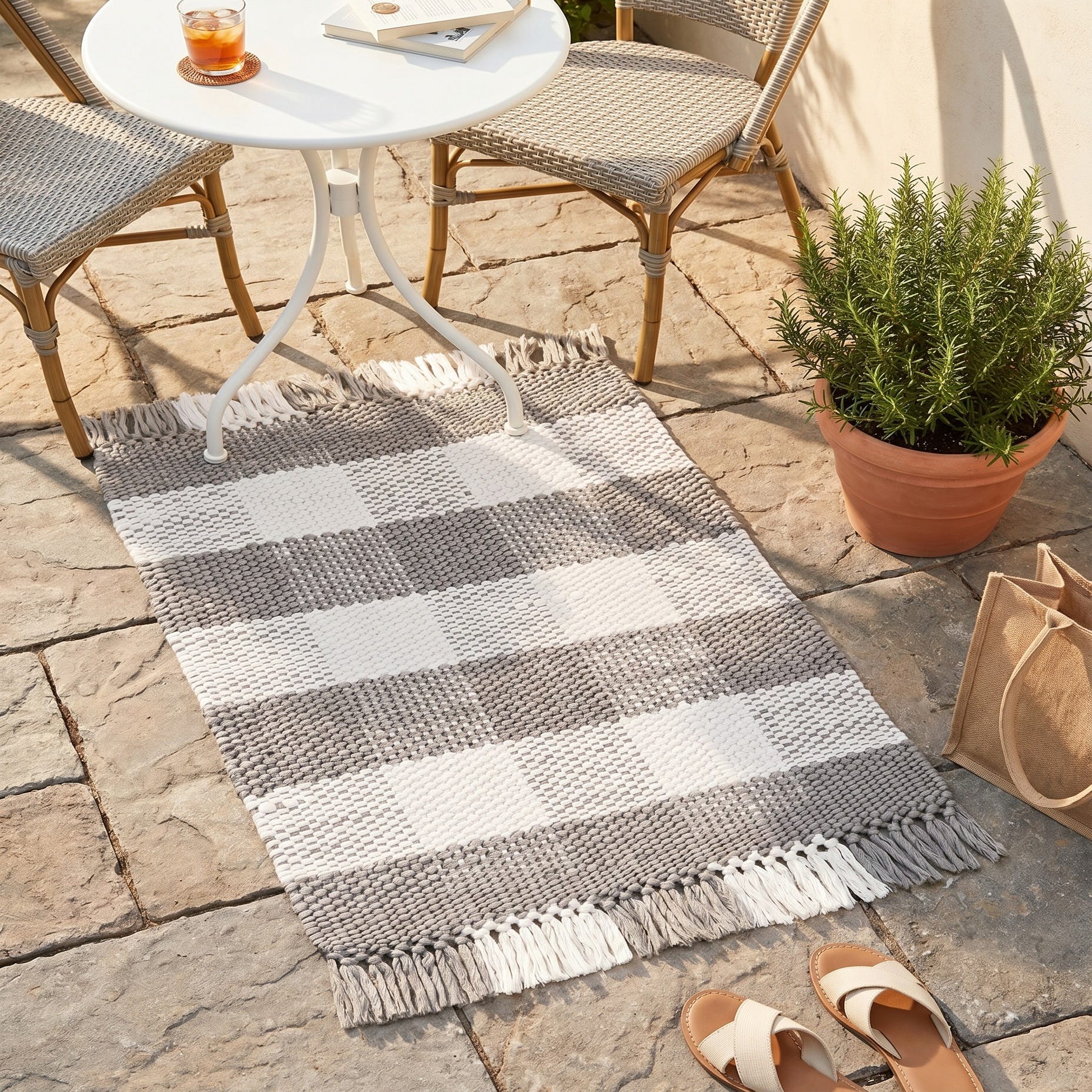 2' 2 x 3' Easy-Clean Eco Plaid Washable Indoor / Outdoor Rug