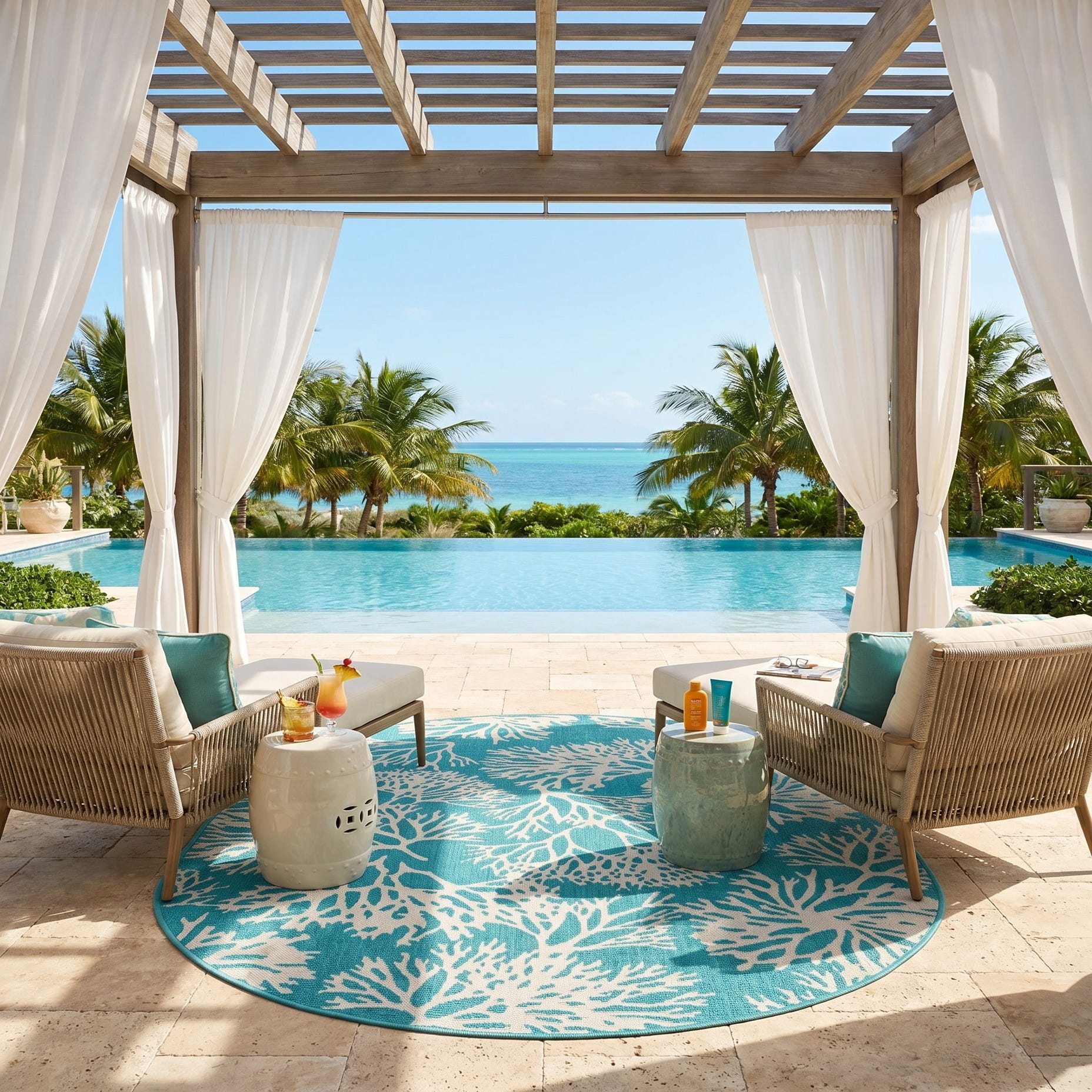 4' x 6' Easy-Clean Coastal Indoor / Outdoor Oval Rug