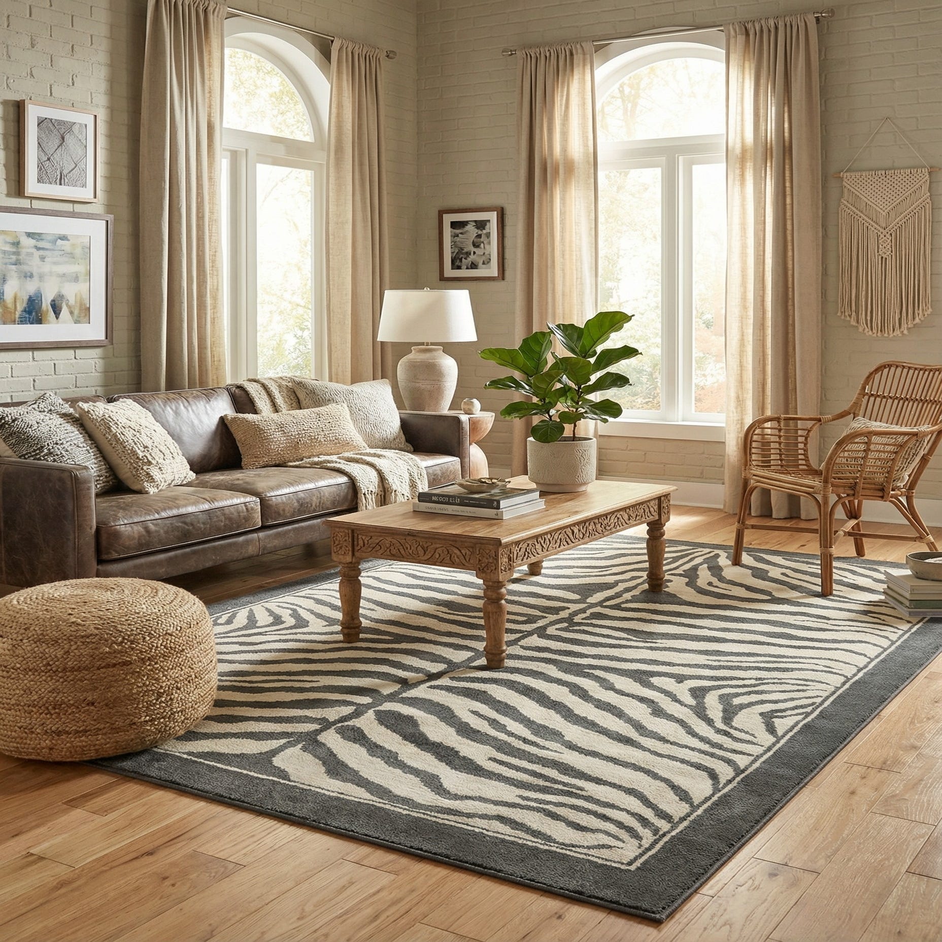 This piece works well as an anchor in contemporary and transitional rooms — place it under a coffee table in a living room, beneath a bed to add visual interest to a neutral bedroom, or in a foyer to make a refined first impression. Pair it with streamlined furnishings, warm wood tones, or monochrome décor to let the pattern play against clean lines, or introduce matte metallic accents for a bolder, modern look.
