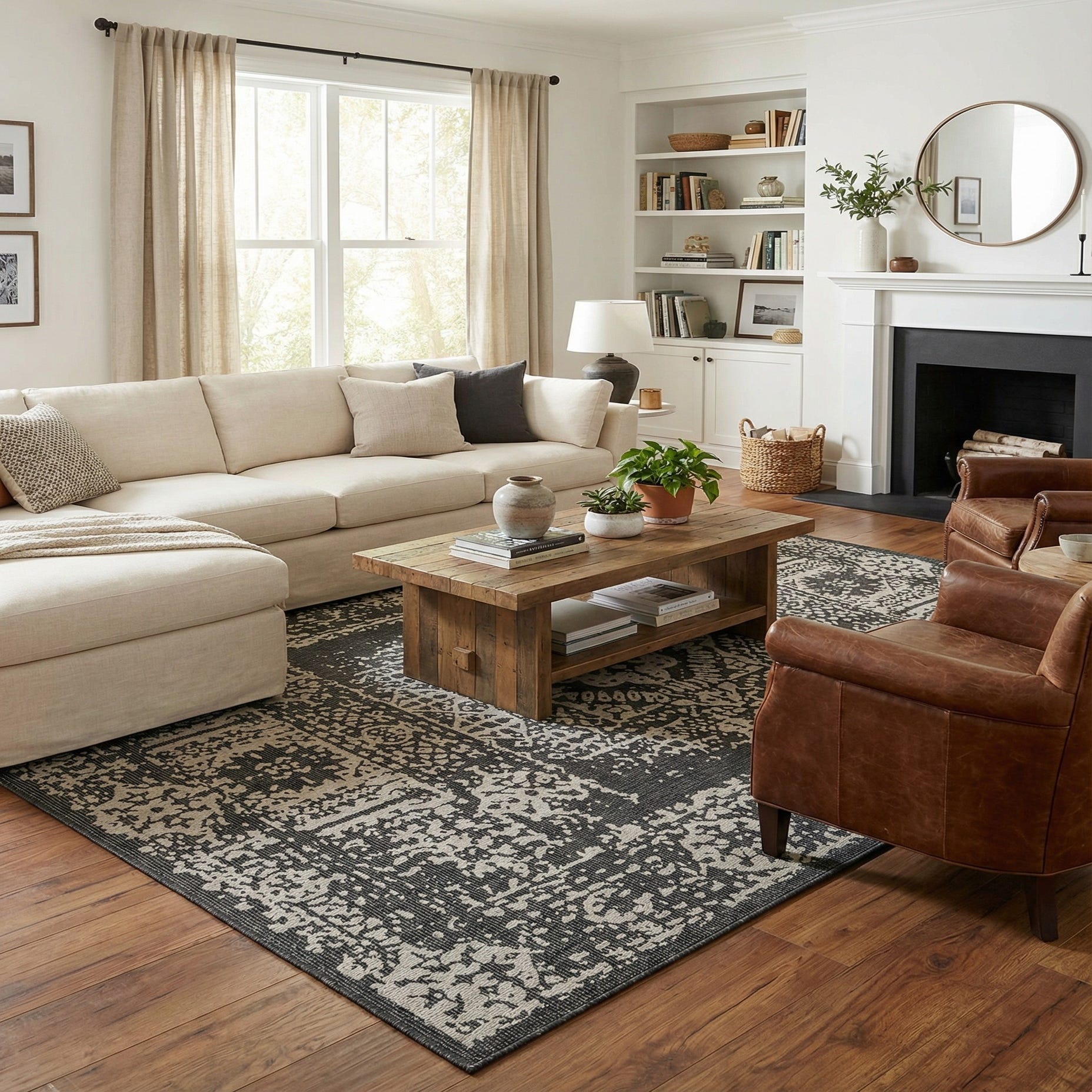This piece anchors a large seating area or outdoor dining arrangement while fitting cleanly into indoor living rooms and sunrooms as well. It pairs particularly well with light or natural wood furniture, black or metal-framed patio sets, and neutral upholstery for a layered, contemporary-traditional aesthetic. Use it to ground a covered patio, define an open-plan living area, or add tailored contrast to a minimalist, industrial, or coastal-inspired scheme.