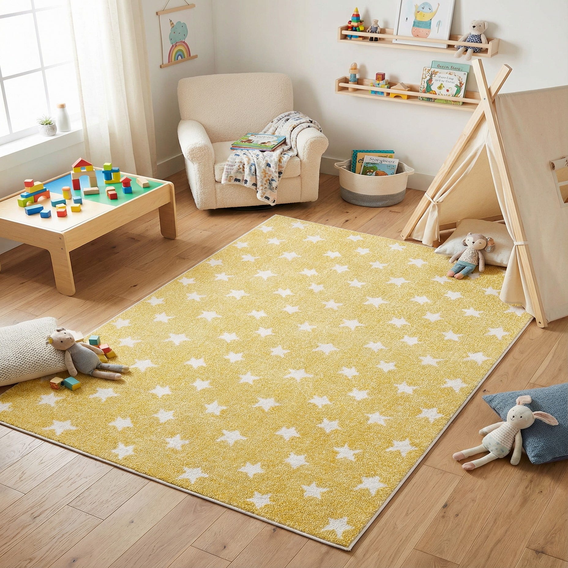 Primary color is Soft Yellow. Colors in this rug include: Soft Yellow, Ivory.