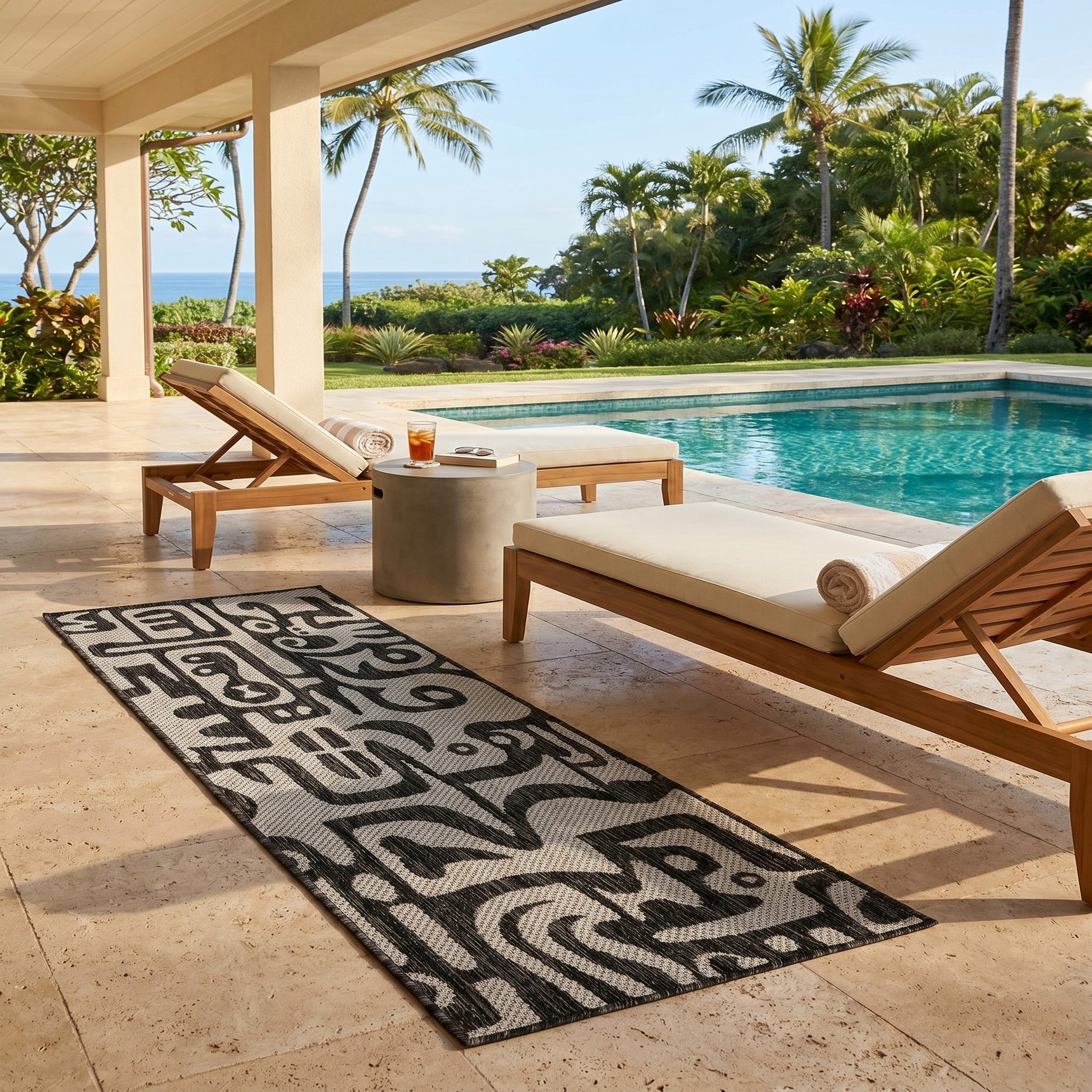 2' x 5' 3 Easy-Clean Modern Indoor / Outdoor Runner Rug