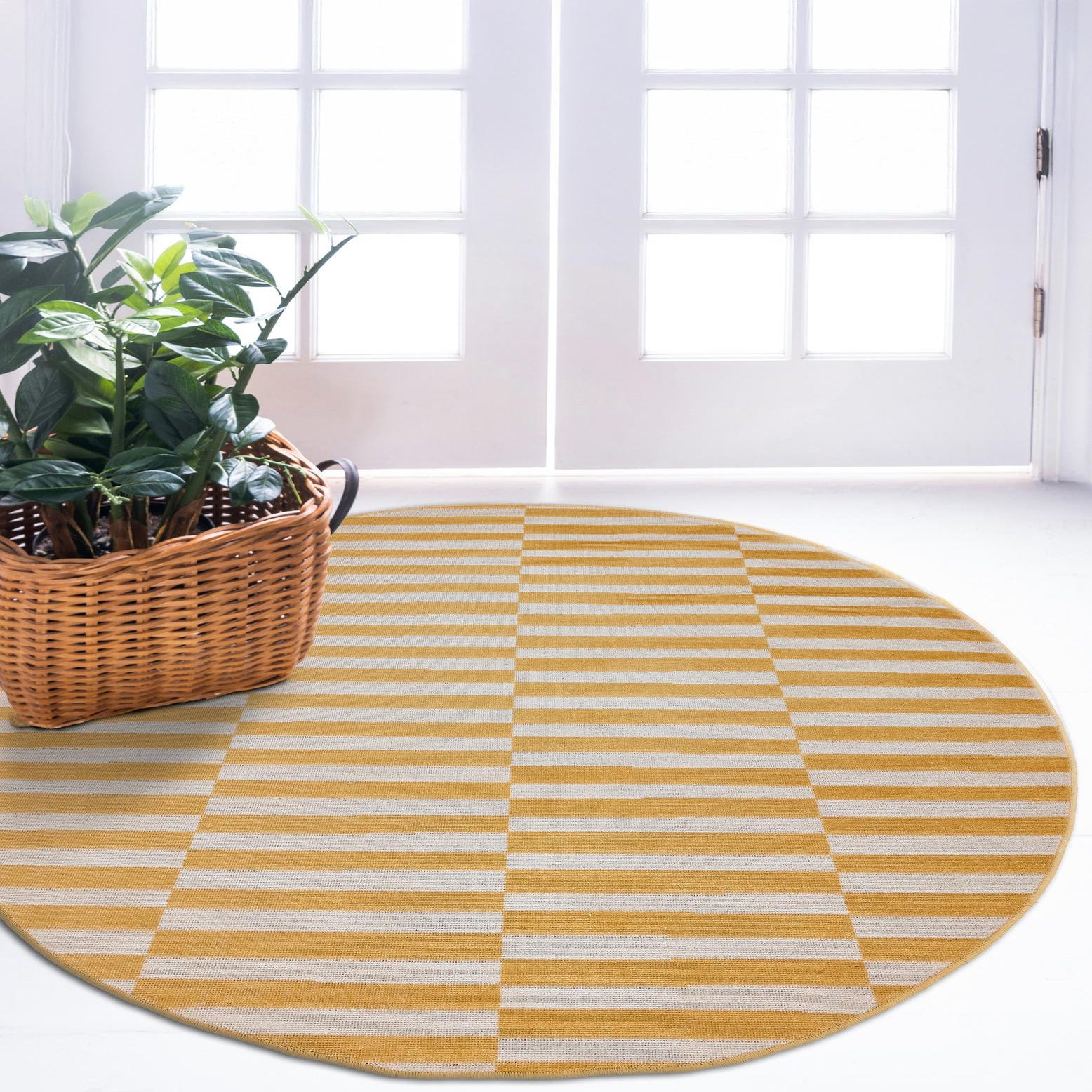 Primary color is Yellow. Colors in this rug include: Yellow, Ivory.