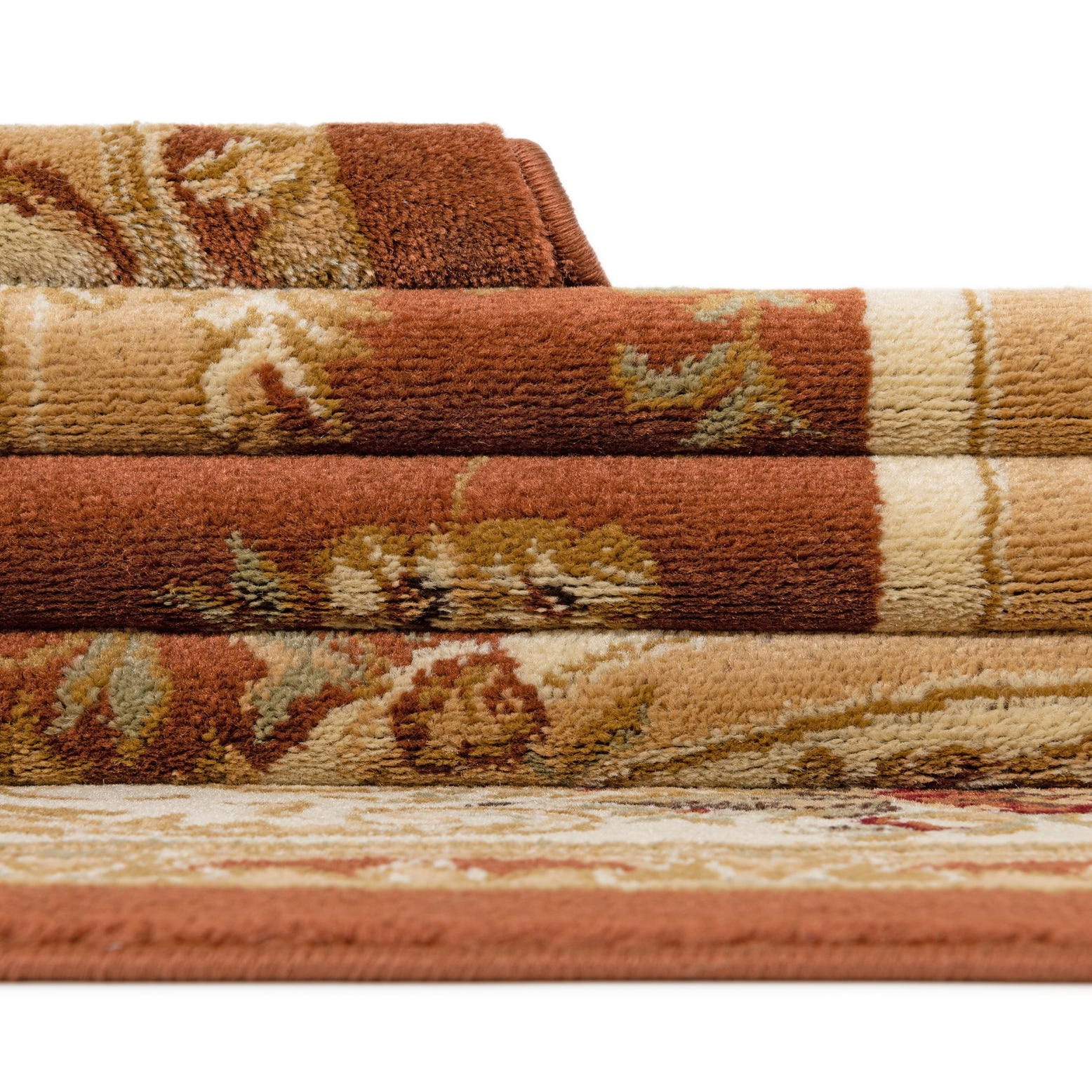 Machine Made of 100% Polypropylene, the rug has a low, even pile that feels smooth underfoot and holds clear, defined detail in the woven motifs. It works well anchoring a seating group in a formal living room, grounding a dining table in a traditional or transitional dining space, or adding warmth to a study with wood furniture and leather accents. Pair it with cream upholstery, warm wood floors or muted wall tones to let the Brick Red field and subtle color accents become the room’s focal point.