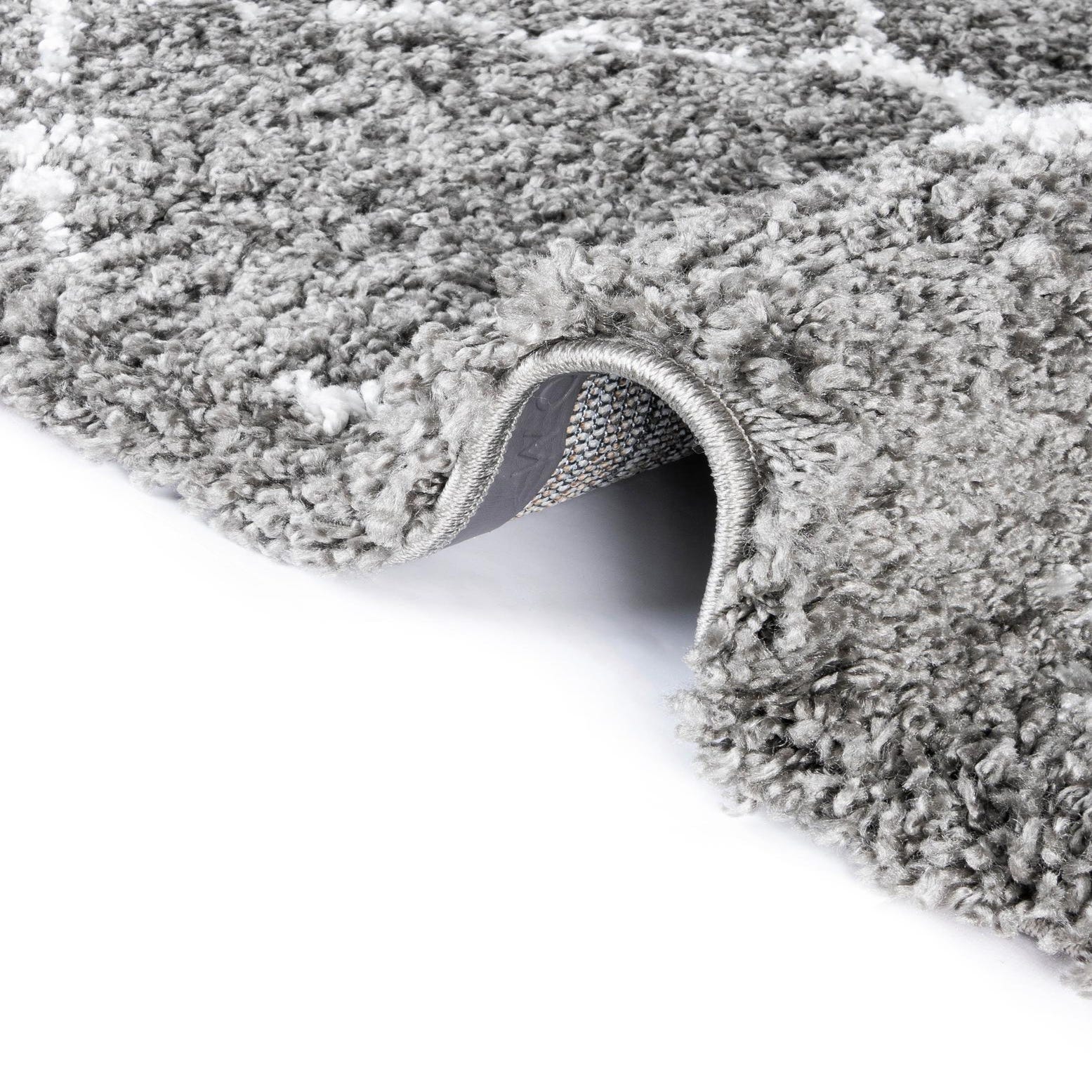 This Moroccan Shag rug would complement spaces that lean towards modern, minimalist, or Scandinavian aesthetics due to its understated color scheme and simple geometric design. It could serve as a harmonious addition to a living room with sleek furniture or a bedroom that values comfort and a serene atmosphere. The generous dimensions of the rug make it an ideal choice for anchoring larger rooms and defining open-plan living spaces.