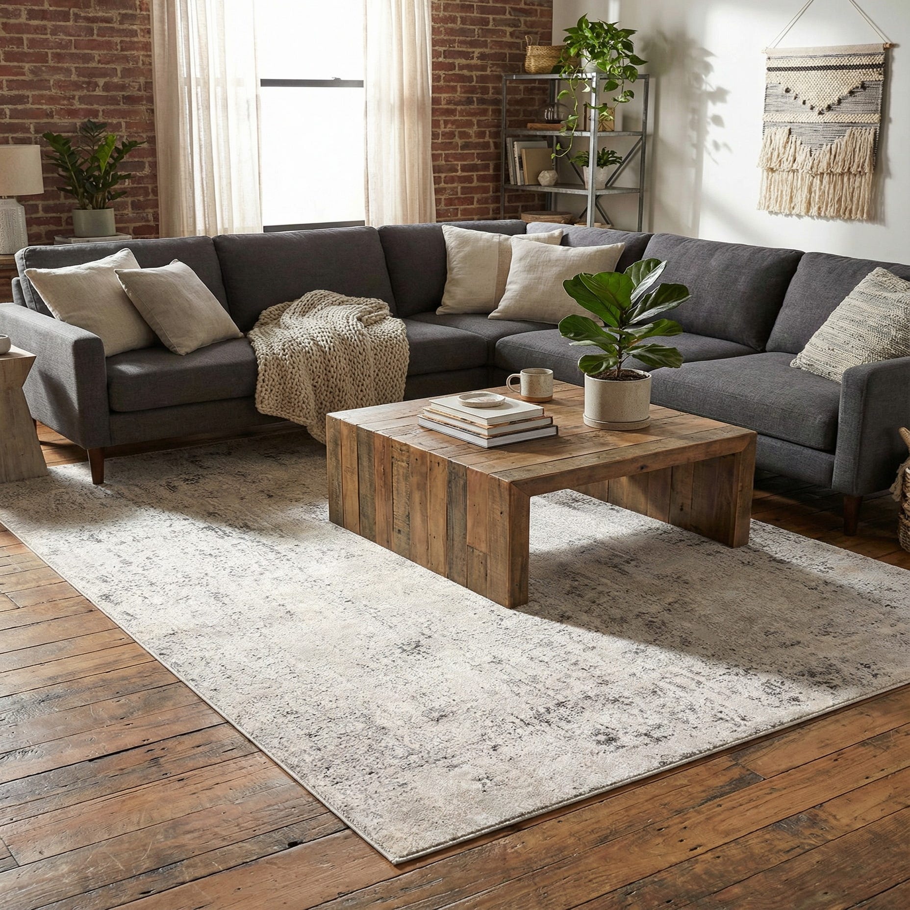 This neutral palette works well under a mid-century sofa and coffee table to brighten a living room, or layered at the foot of a bed to add quiet texture to a calming bedroom scheme. Pair it with cool-toned linens, matte metals, and light wood finishes for a cohesive, relaxed space, or use it as a subtle backdrop in a home office to keep the focus on furnishings and decor.
