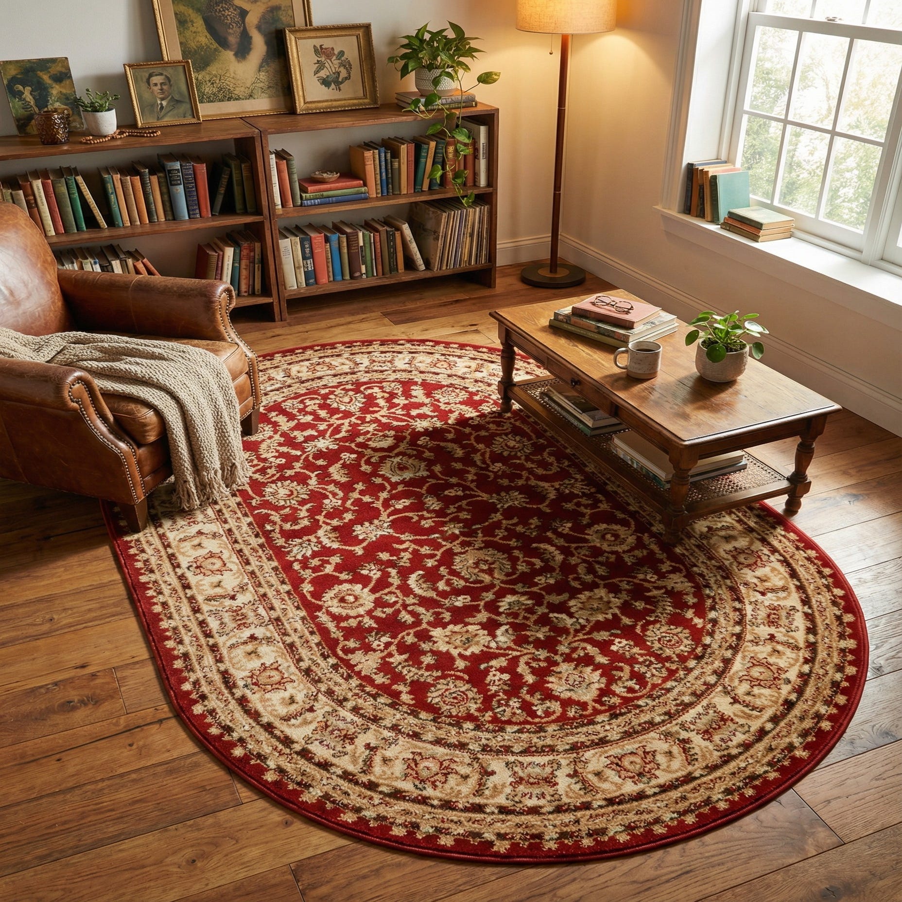 Machine made from 100% polypropylene, the rug has a low to medium pile with a pleasantly soft hand and a tightly constructed face that highlights the detailed motifs. Its oval profile is well suited to compact areas—place it in an entry or foyer to establish a warm welcome, under a round bistro table, or at the foot of a bed to add a layer of traditional pattern. It pairs naturally with warm wood furniture, leather seating, or cream upholstery and works equally well in a formal living room or a cozy reading nook.
