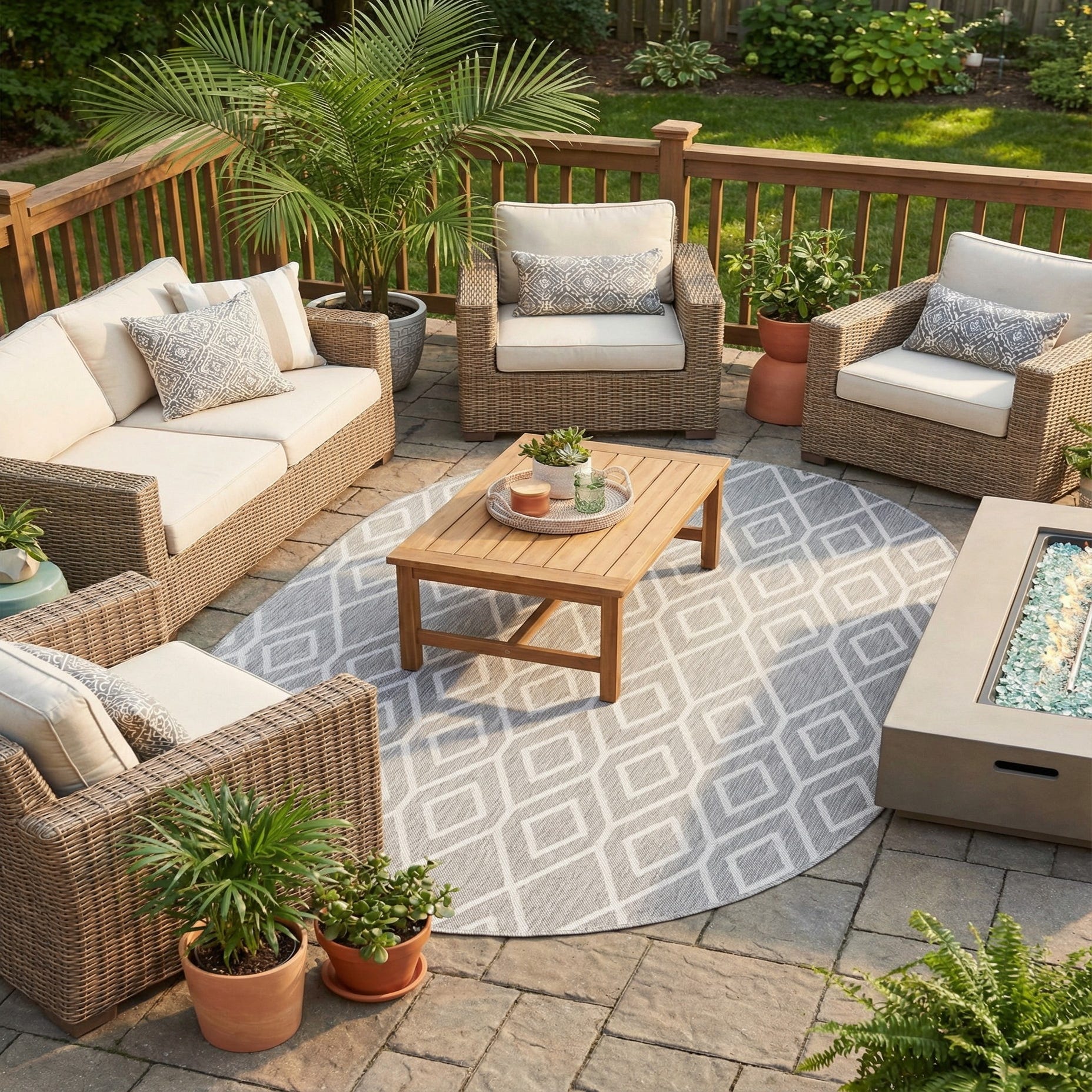 This suited my needs perfectly for a little outdoor breakfast area. The pattern mimics my garden lattice pattern. These photos were taken at night but it shows up well. Dries out quickly after rain
