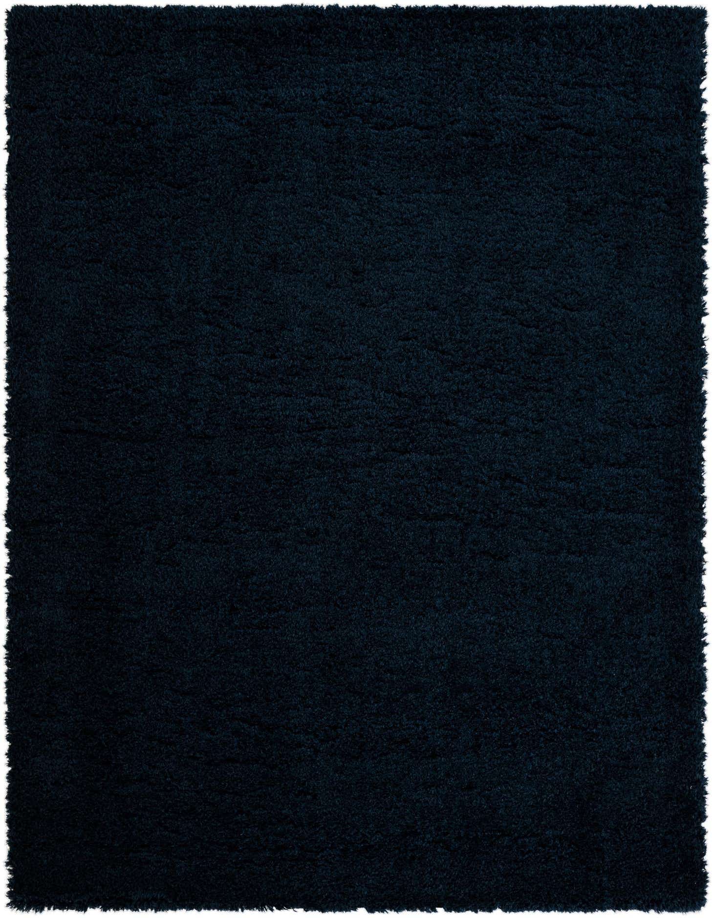 A plush, rectangular 10x14 navy blue shag rug, offering a soft, solid-colored texture for an indoor living space.