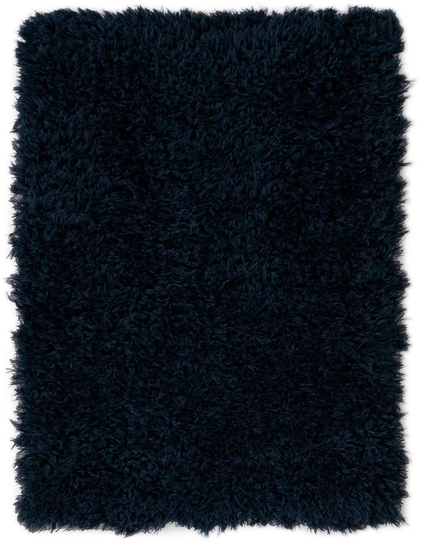 A plush, rectangular 2x3 navy blue shag rug with a deep, textured pile, perfect for adding comfort to any indoor space.
