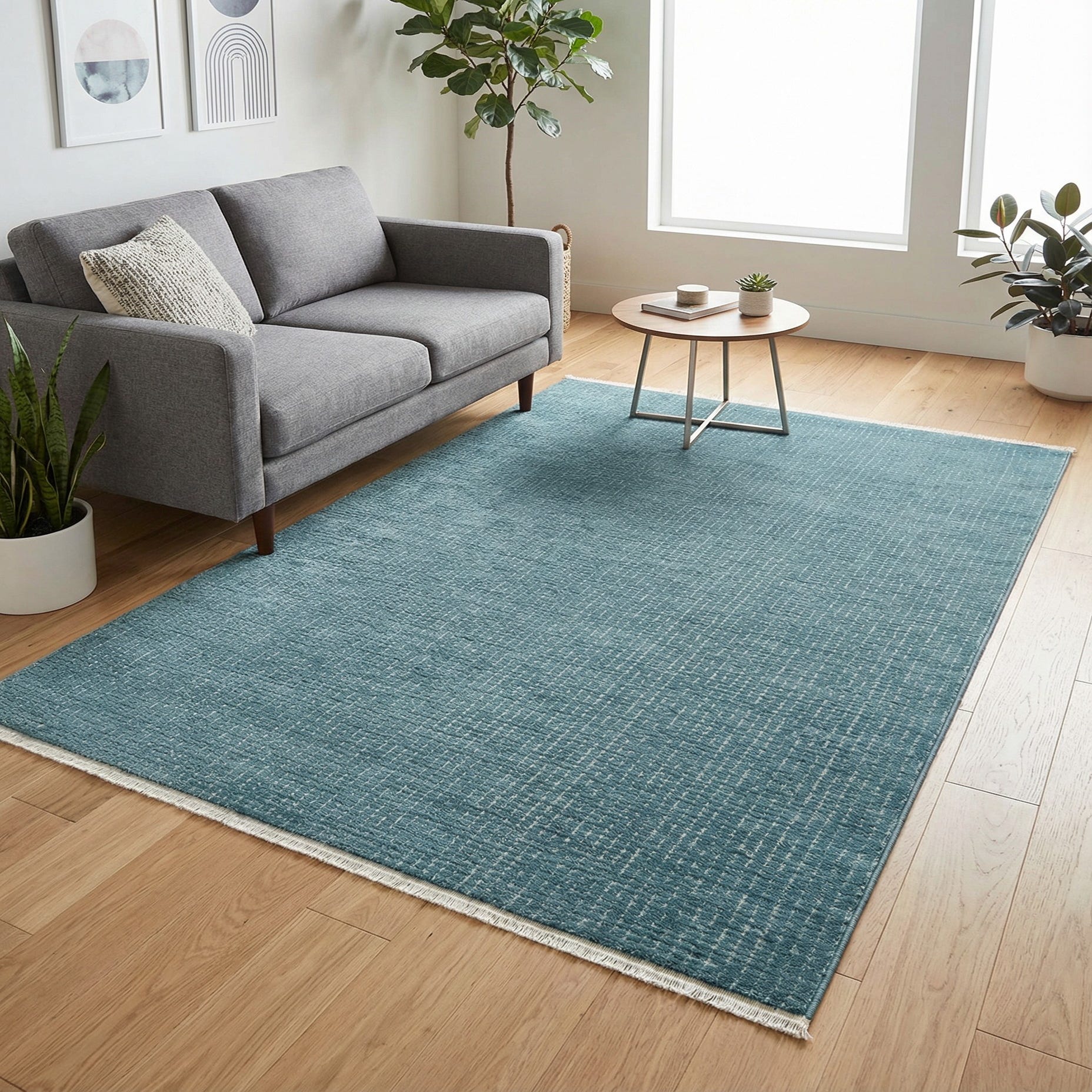 This rug works well in a coastal or contemporary living room, layered beneath a small seating area, or placed at the foot of a bed to add color and softness. It pairs easily with natural wood tones, light-grain oak furniture, and linen or neutral upholstery for a balanced, tranquil palette, and it will also complement crisp white cabinetry or matte black accents in a home office or entryway. The restrained pattern and tactile chenille surface make it a good choice for spaces where you want subtle interest without overpowering other elements.