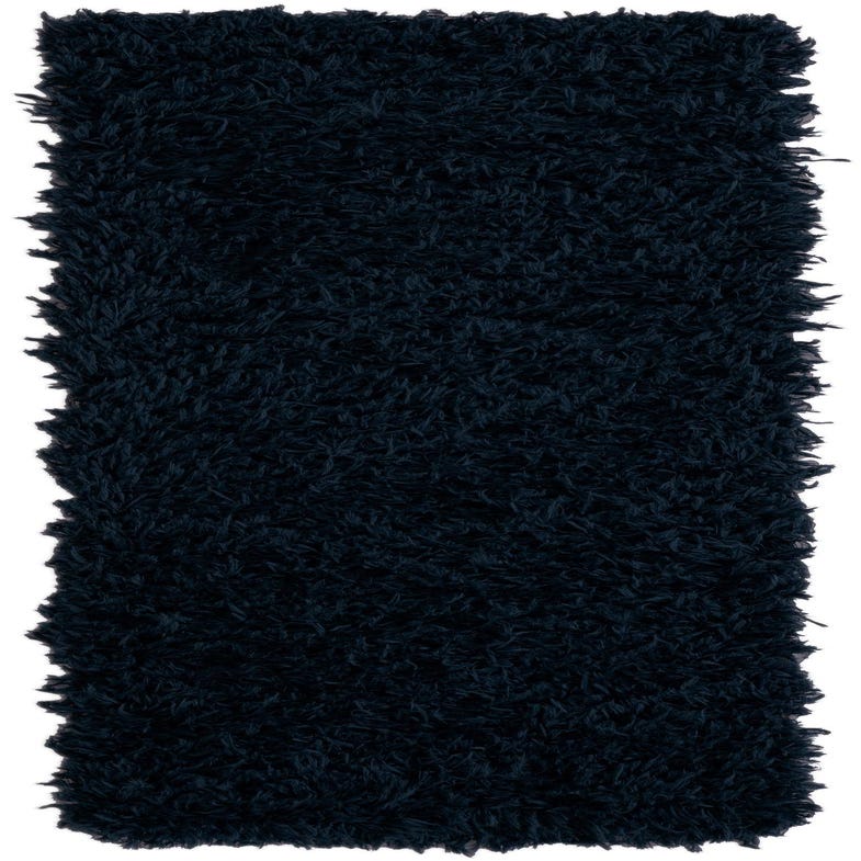 A deep Aegean Blue shag with a uniform, single-color field and long, dense pile that invites bare feet. The high-loft construction creates a textured, tactile surface with soft movement across the strands. Machine-made from 100% polyester, the rug offers a velvety hand and subtle sheen that holds color evenly across the surface.