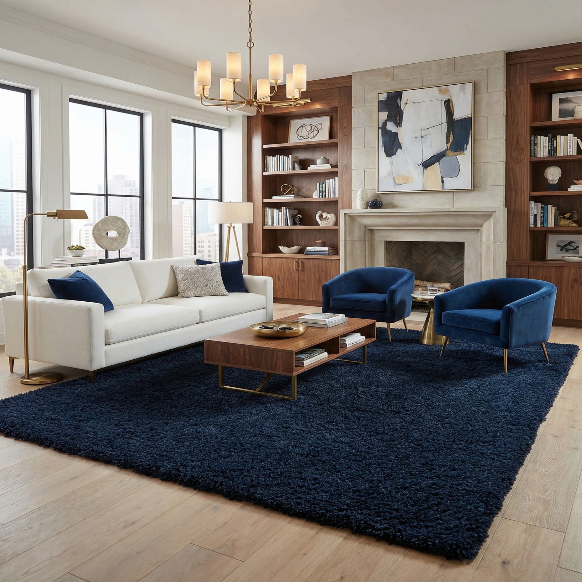 This solid-color shag works well in relaxed, contemporary spaces where comfort is a priority: position it beneath a low-profile sofa and coffee table to anchor a living room, layer it at the foot of a bed for a cozy bedroom retreat, or place it in a media room to enhance comfort and atmosphere. It pairs nicely with warm wood tones, crisp neutrals, or metallic accents for contrast, and fits both minimalist and more eclectic schemes that benefit from a soft, textural foundation.