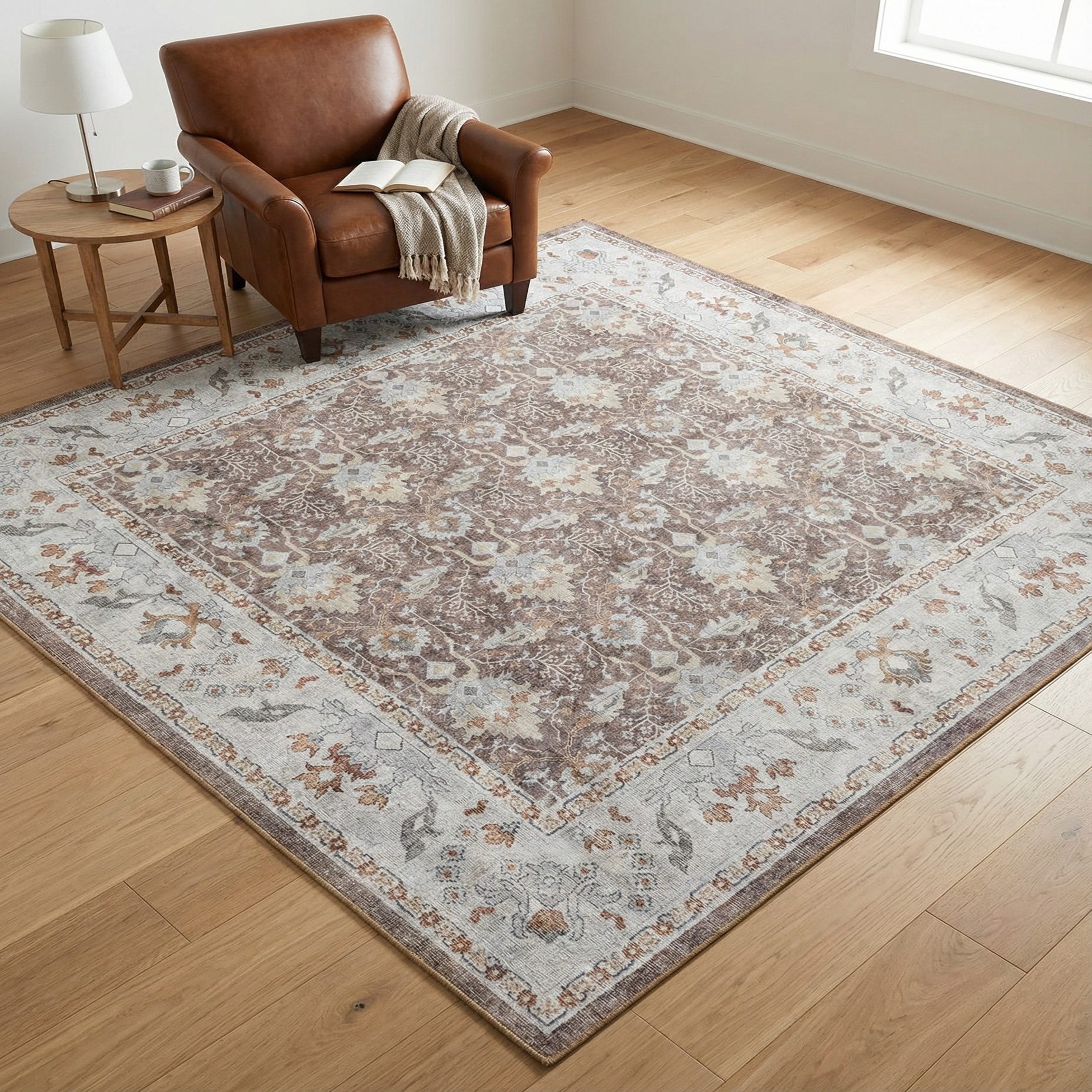 This rug's aesthetic leans towards the classic, with a design that could easily serve as the centerpiece in a traditional setting or add a touch of elegance to a more contemporary space. The stain-resistant quality of the rug ensures it remains a practical choice for everyday living, while being pet-friendly and shed-free adds to its functional appeal.