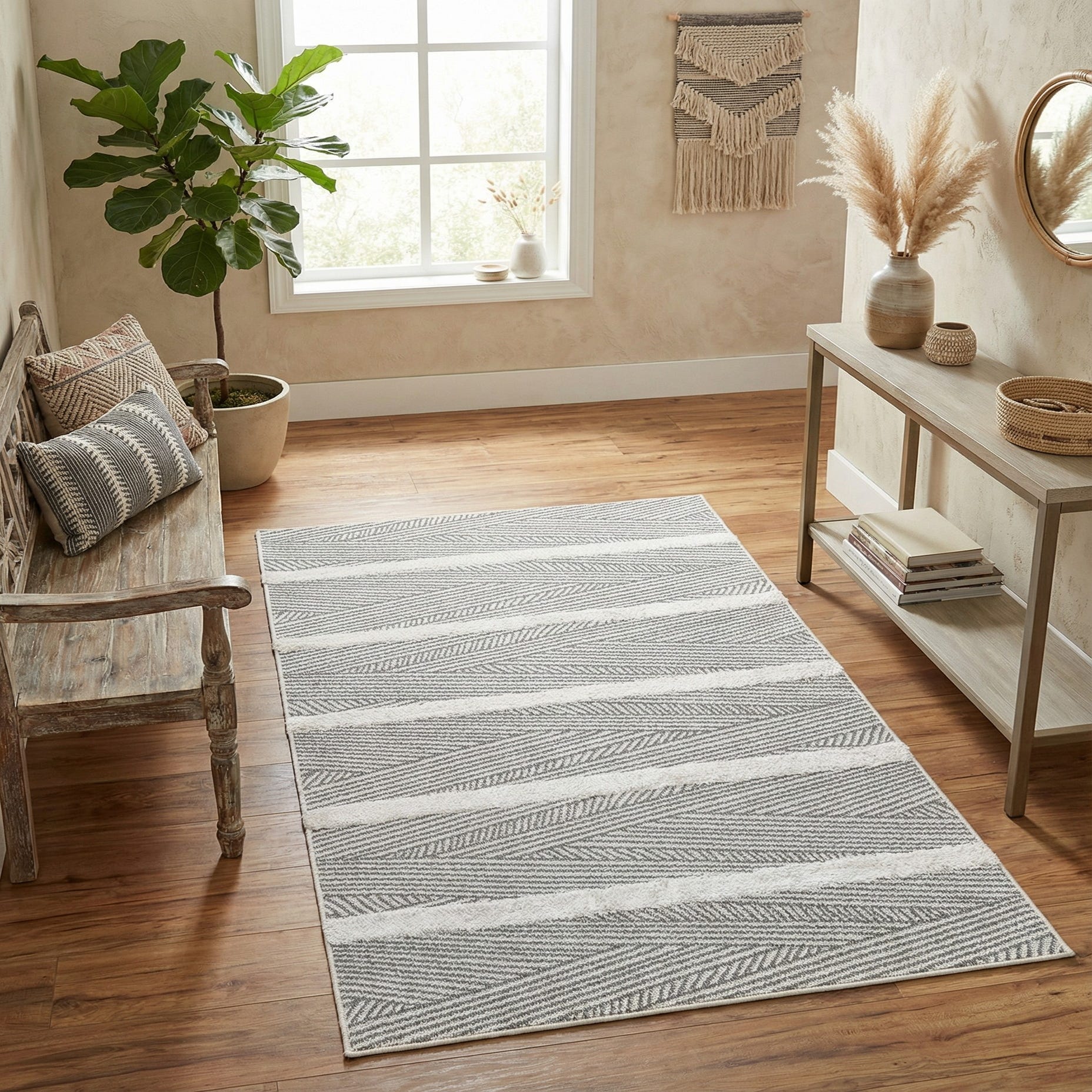 Primary color is Anthracite Gray. Colors in this rug include: Anthracite Gray, Ivory.