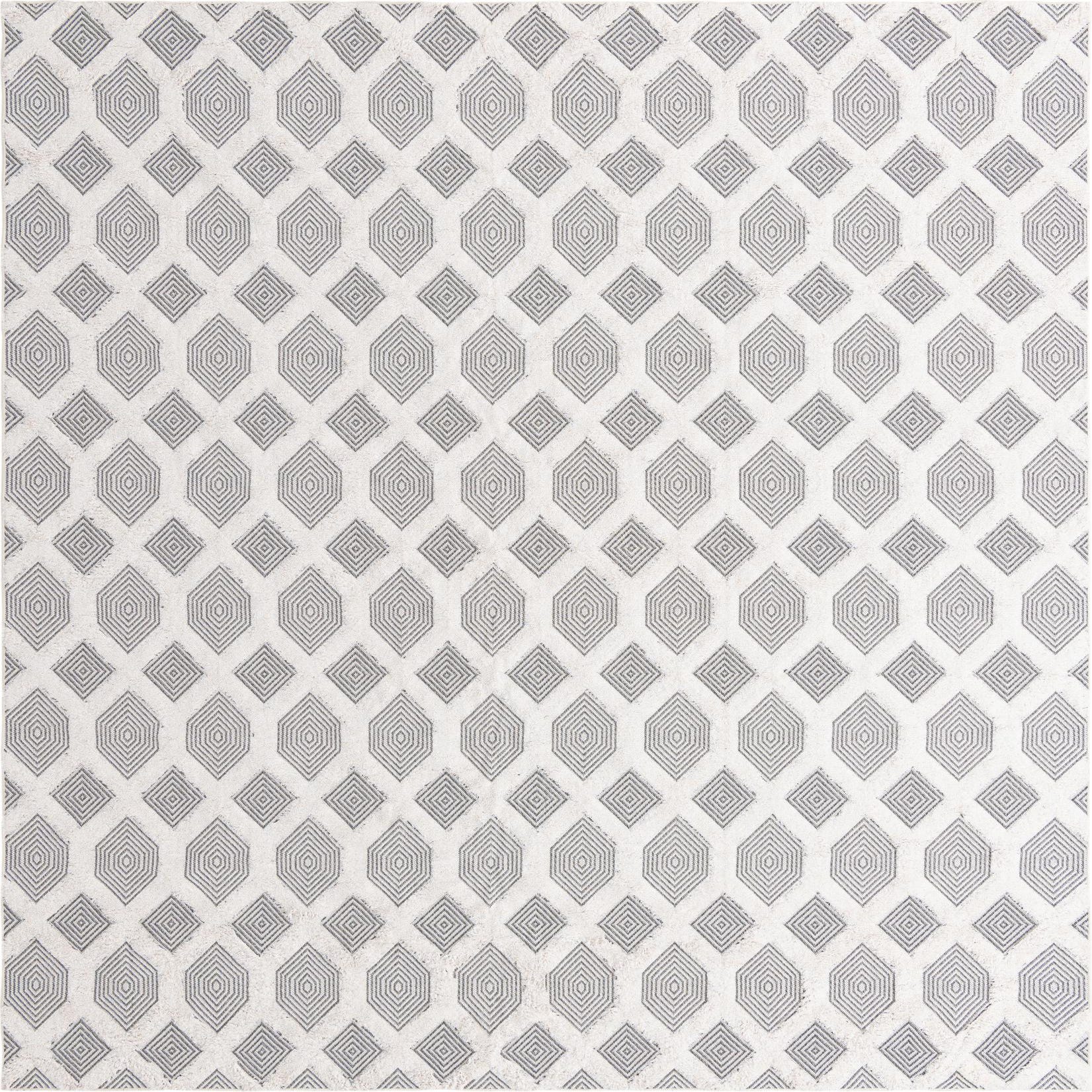 A crisp geometric lattice of concentric diamonds sits against an Anthracite Gray ground, rendered in clean Ivory lines that create a steady, rhythmic pattern across the surface. The design reads modern with a subtle nod to mid-century geometry—orderly, balanced shapes that add visual interest without competing with other elements in the room. Machine-made from 100% cotton, the rug has a soft hand and a low-profile weave that gives a gentle, tactile texture where the pattern is slightly raised against the background.