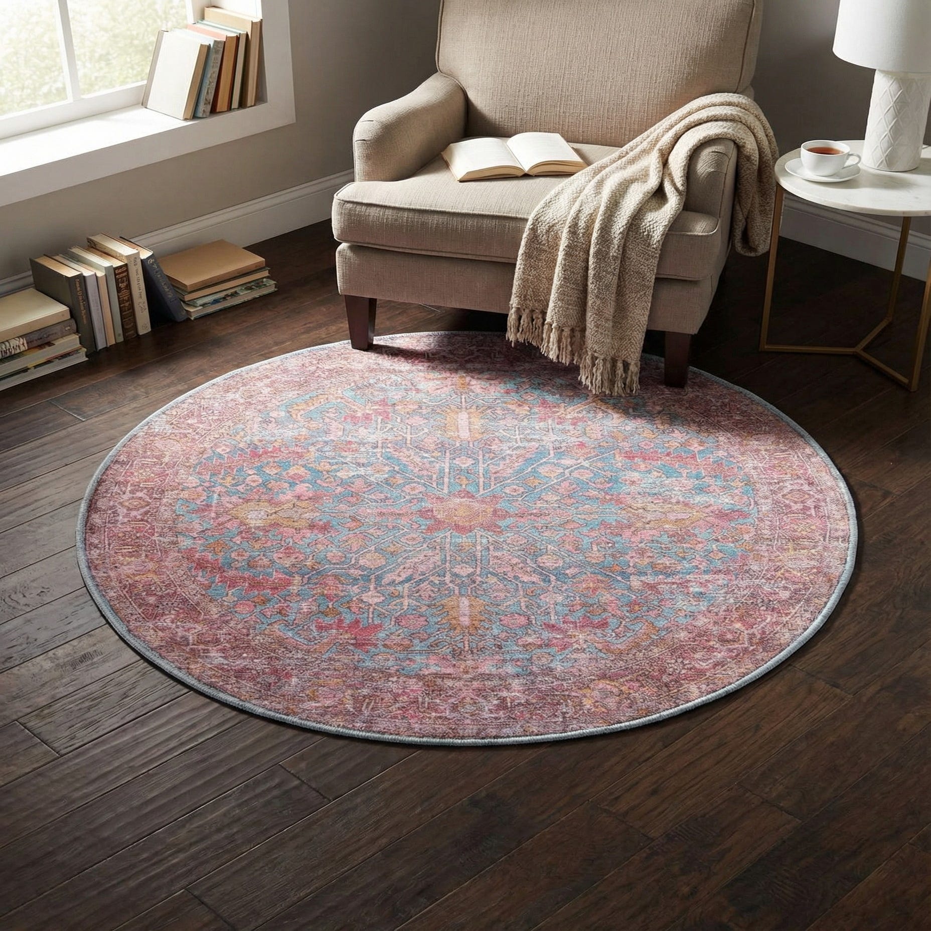 4' x 4' Washable Mangata Round Rug