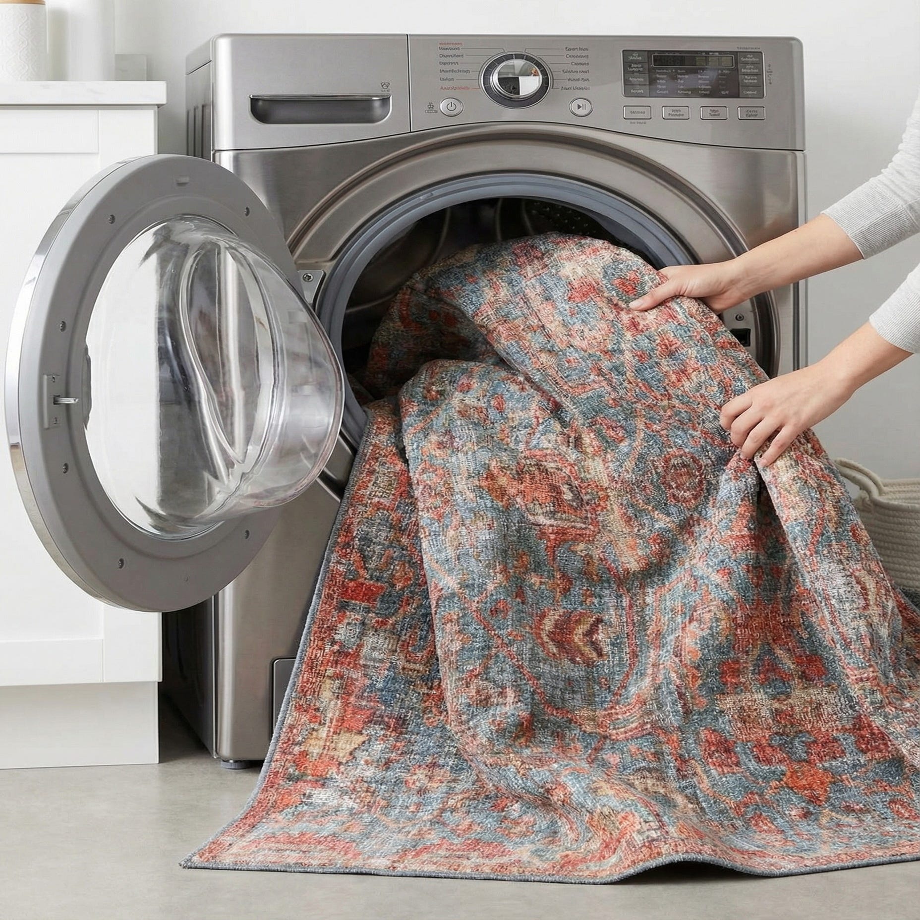 Stain-resistant and shed-free properties make this square rug an excellent addition to spaces used by families and pets. Given its pet-friendly nature, it's an ideal choice for homes where easy cleaning and resilience are priorities. Additionally, the rug's machine washability further simplifies home care routines.