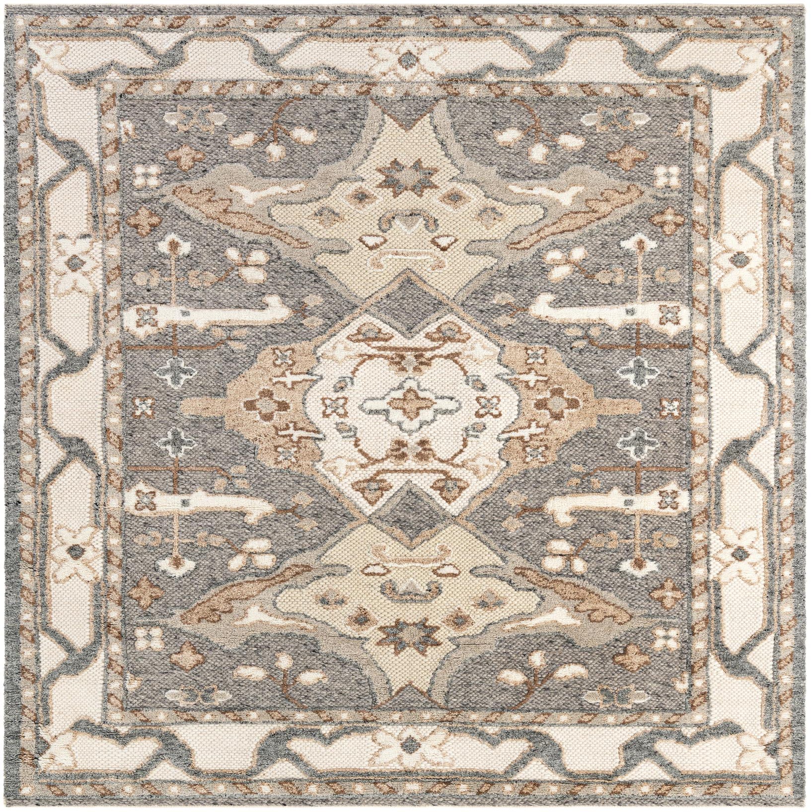 Primary color is Antique Gray. Colors in this rug include: Antique Gray, Brown, Ivory.