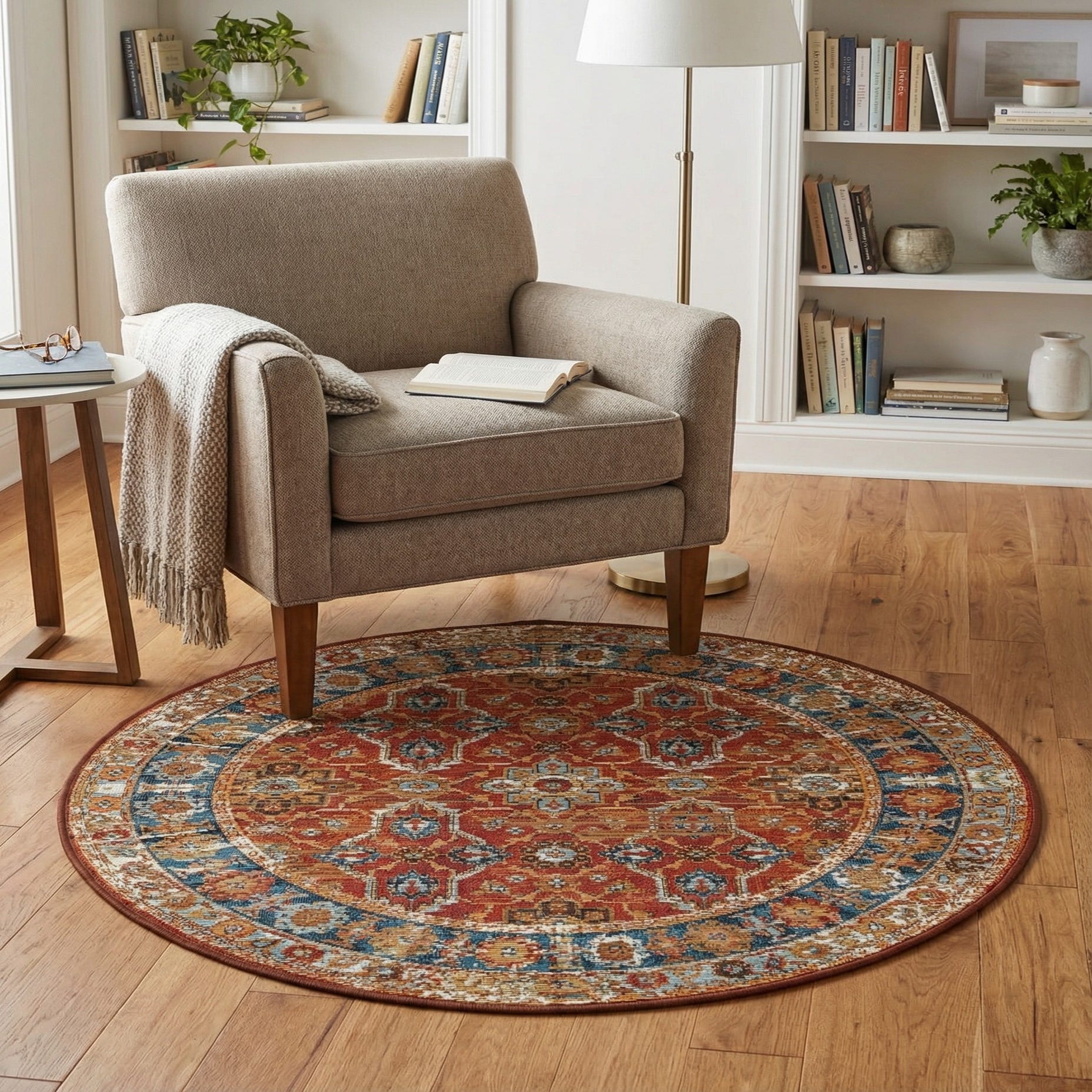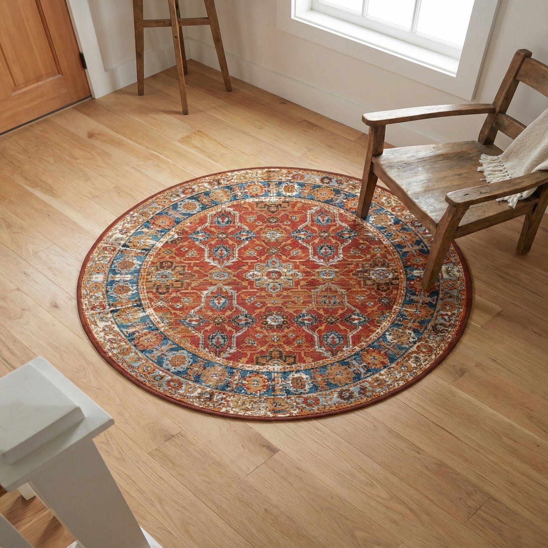 3' x 3' Washable Traditional Indoor / Outdoor Round Rug
