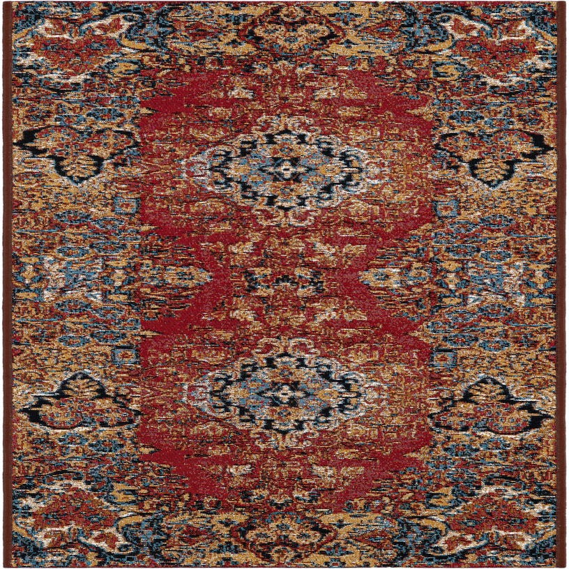 A 5 ft runner rug with a traditional Oriental medallion pattern in shades of red, gold, and blue, suitable for a hallway or patio.