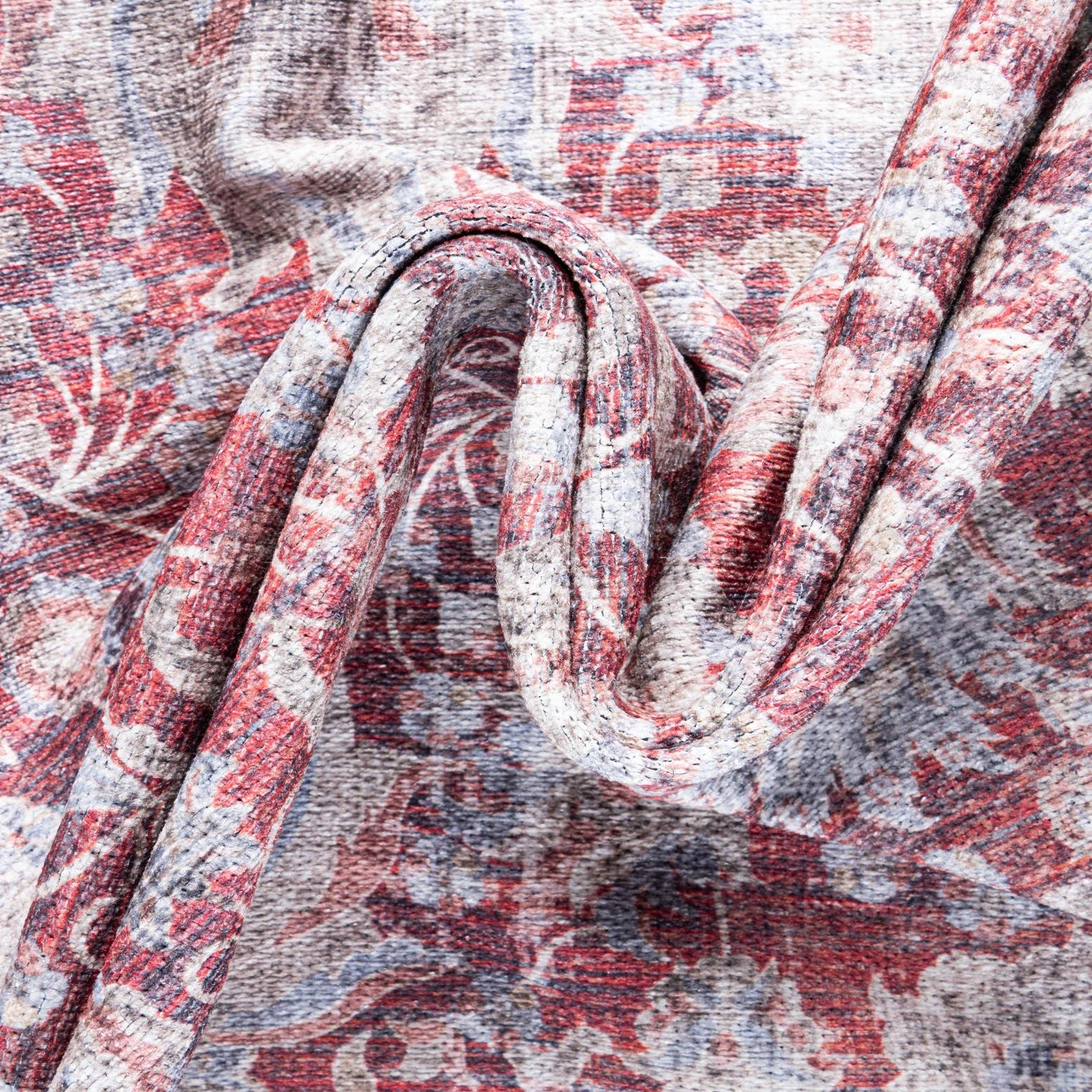 Machine made of polyester and chenille, the rug has a low-profile, soft hand—chenille threads lend a velvety surface underfoot while polyester fibers keep the look smooth and resilient. Its classic pattern and warm palette work well beneath a round dining table, as the anchor for a cozy seating arrangement, or layered in a foyer or sunroom. Pair it with warm wood tones and leather or neutral upholstery for a traditional to transitional setting, or mix it with cool grays and navy accents for a balanced, contemporary feel.