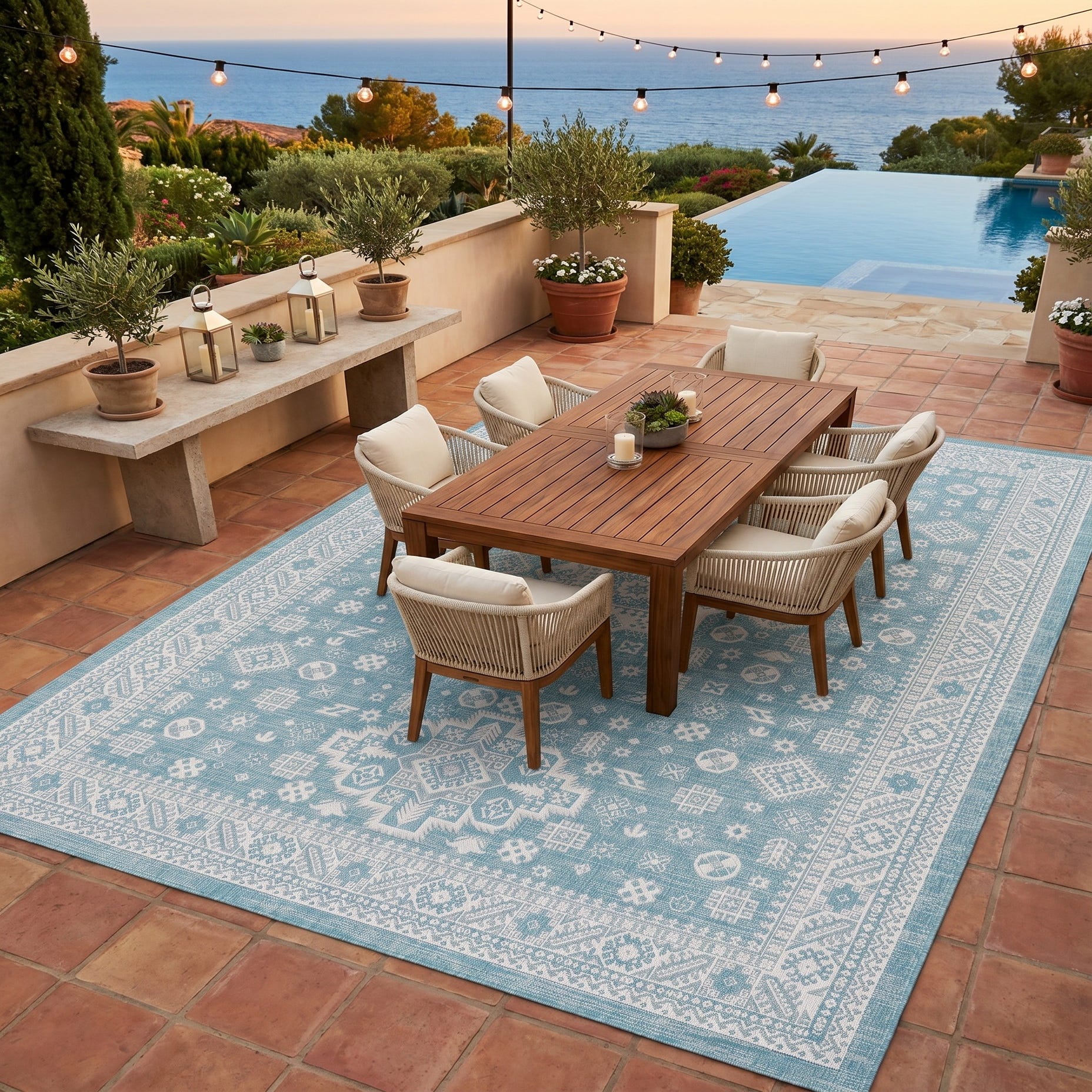 10' x 14' Easy-Clean Aztec Indoor / Outdoor Rug