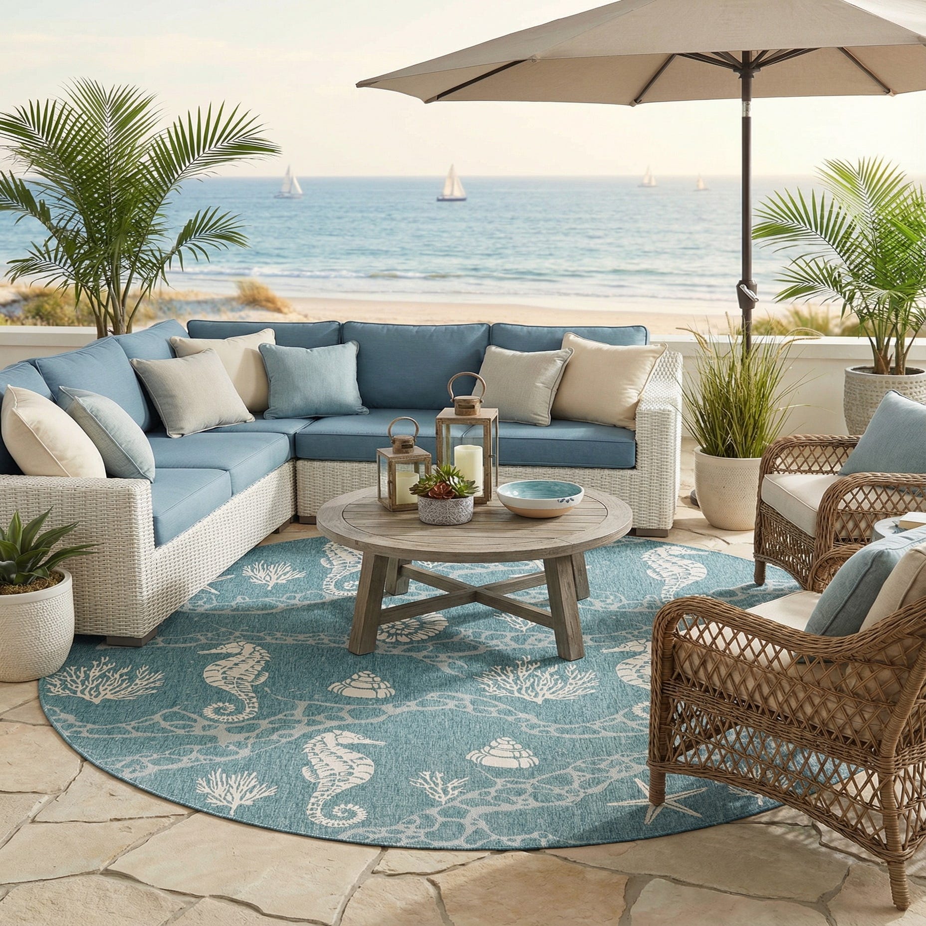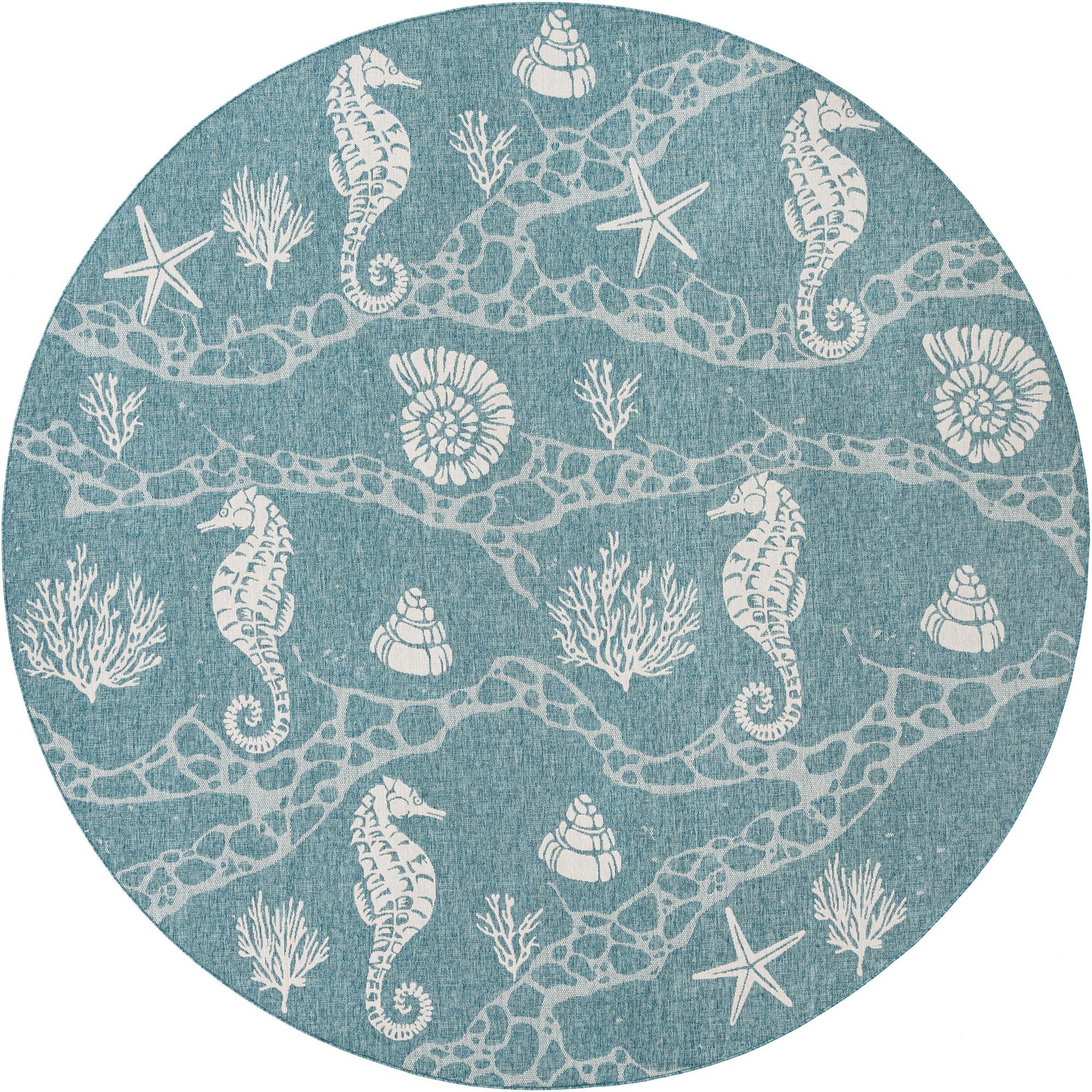 13' x 13' Washable Coastal Indoor / Outdoor Round Rug