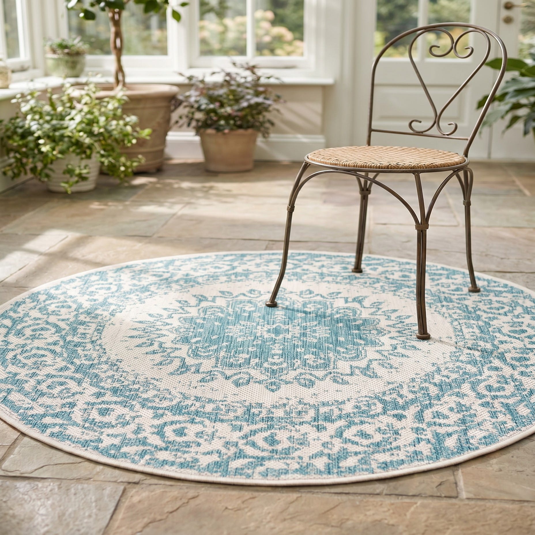 3' x 3' Easy-Clean Traditional Indoor / Outdoor Round Rug