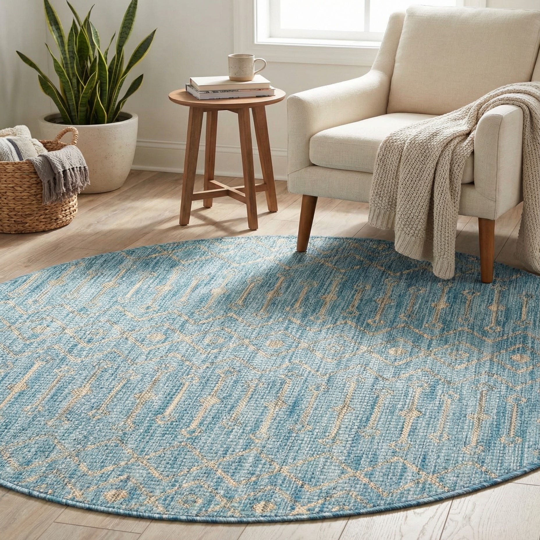 4' x 4' Washable Lattice Indoor / Outdoor Round Rug
