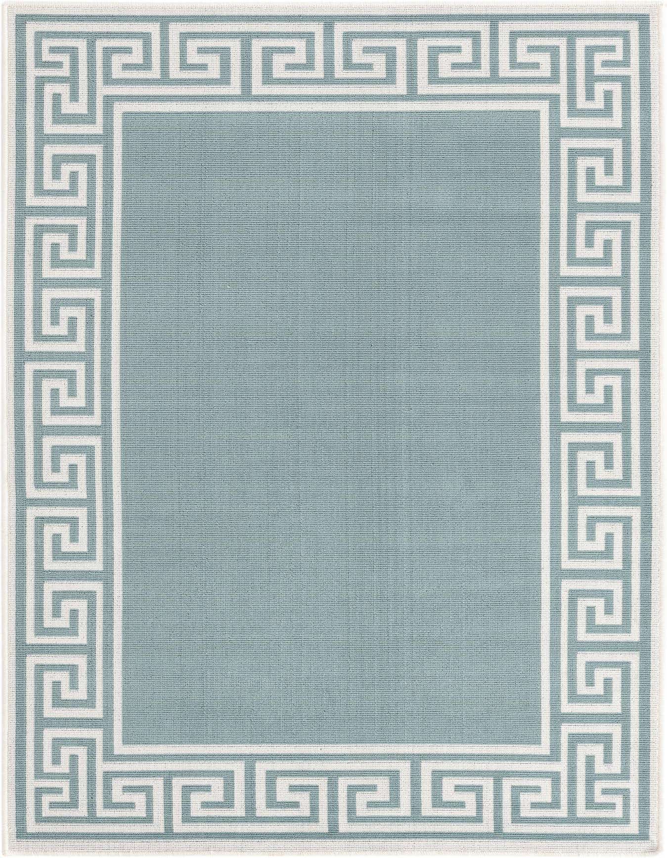 The Outdoor Coastal collection presents a stylish 4x6 area rug featuring a serene aqua background with a captivating geometric border in ivory, offering a modern yet timeless appeal. Machine woven of 100% polypropylene, this rug delivers durability for indoor and outdoor spaces alike. The flatweave construction ensures a smooth texture that's ideal for high-traffic areas, and the stain-resistant nature of the polypropylene fibers makes it an excellent choice for dining areas or patios where spills may occur.