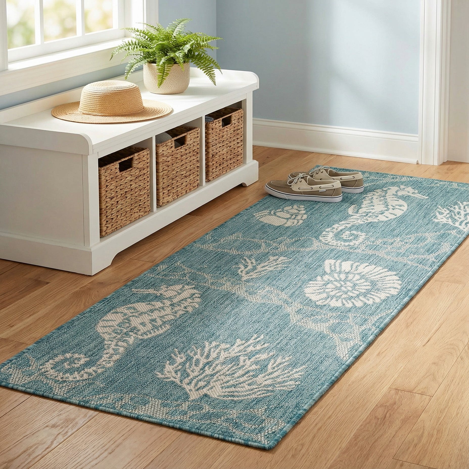 2' x 5' 3 Washable Coastal Indoor / Outdoor Runner Rug