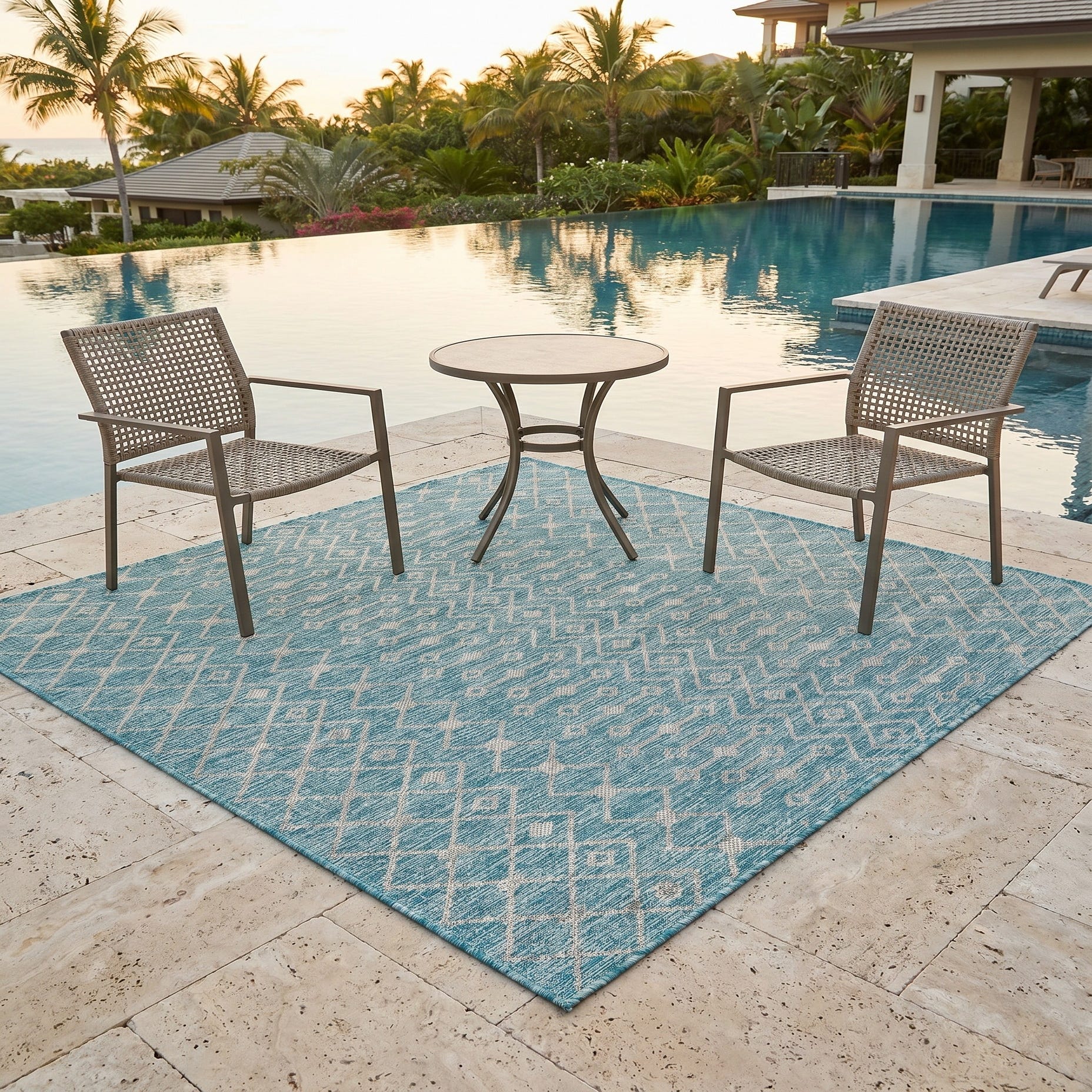 5' 3 x 5' 3 Easy-Clean Lattice Indoor / Outdoor Square Rug