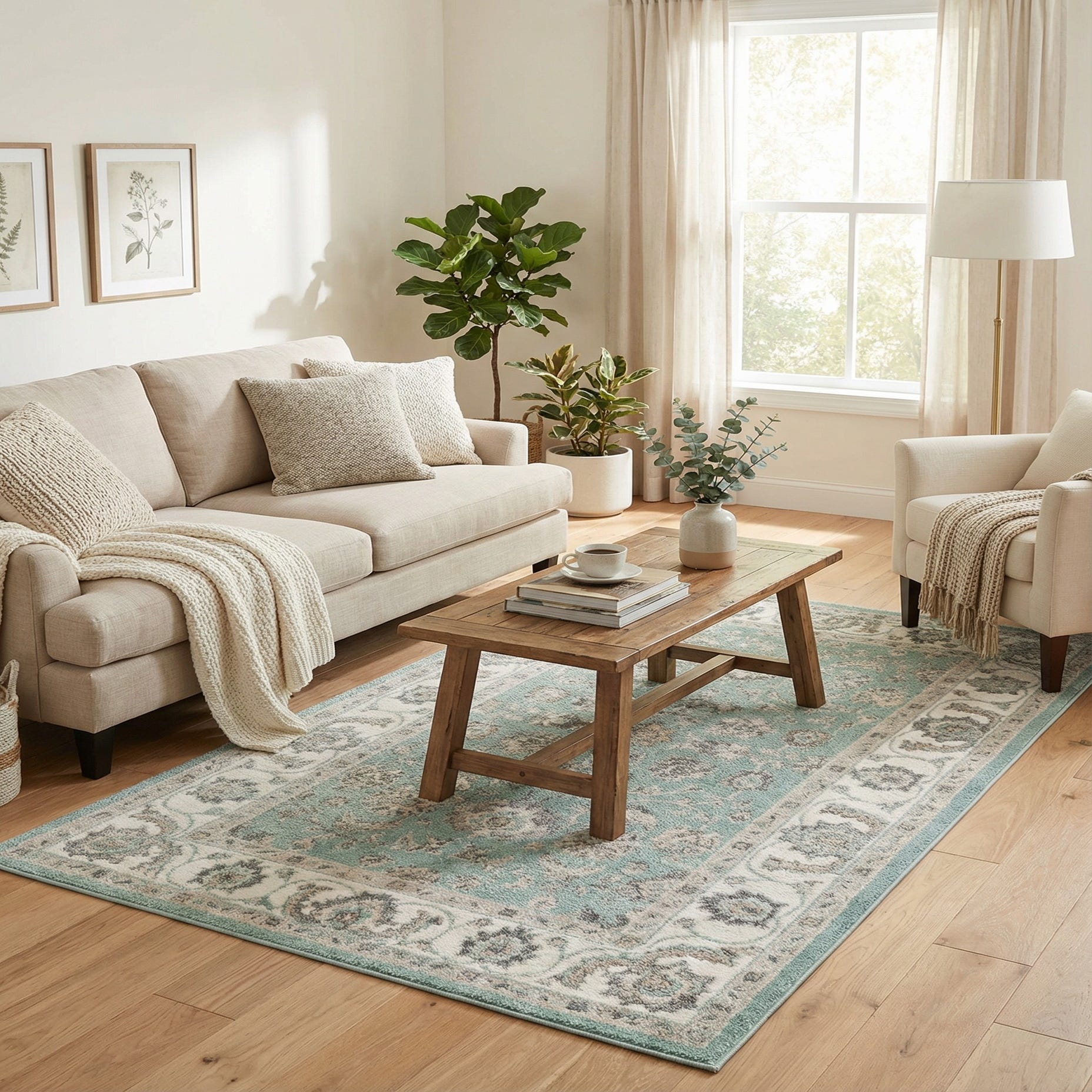 Made from 100% polypropylene, this rug combines a refined look with durable, consistent weaving. It pairs naturally with coastal or cottage-style interiors—think whitewashed wood, linen upholstery and light, airy rooms—but also complements transitional or modern-traditional settings where a hint of color and pattern is desired. Place it under a coffee table in a living room, at the foot of a bed in a bedroom, or in an entry or dining area to introduce color and patterned interest without overwhelming the space.