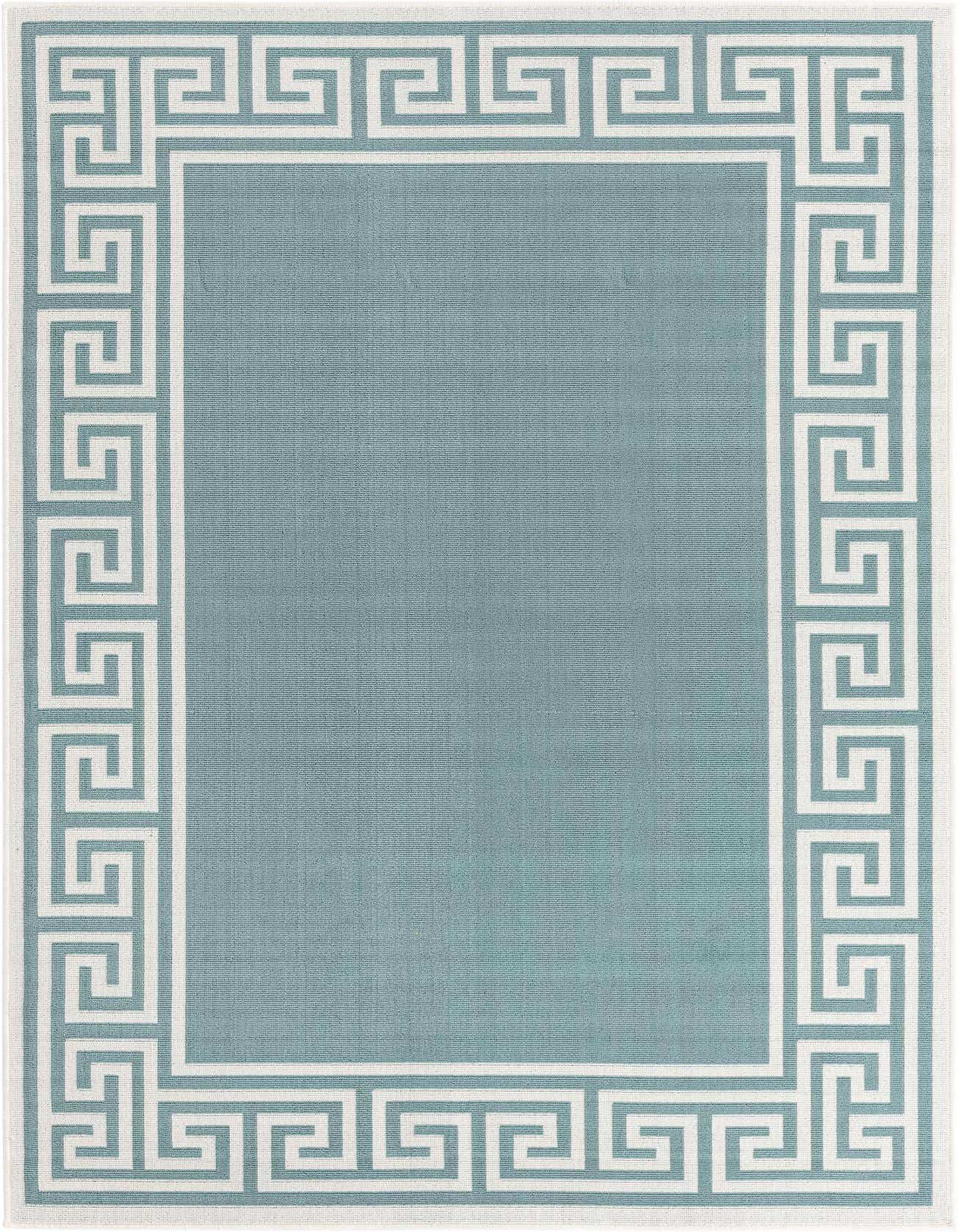 Primary color is Aqua. Colors in this rug include: Aqua, Ivory.