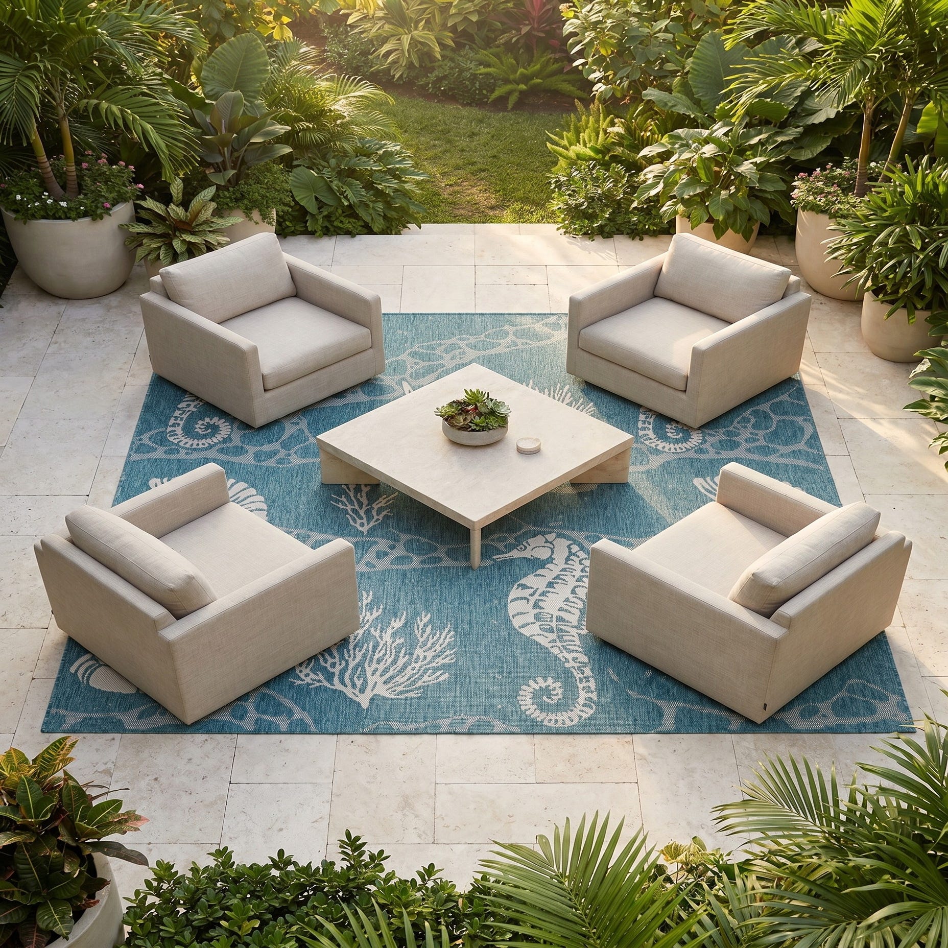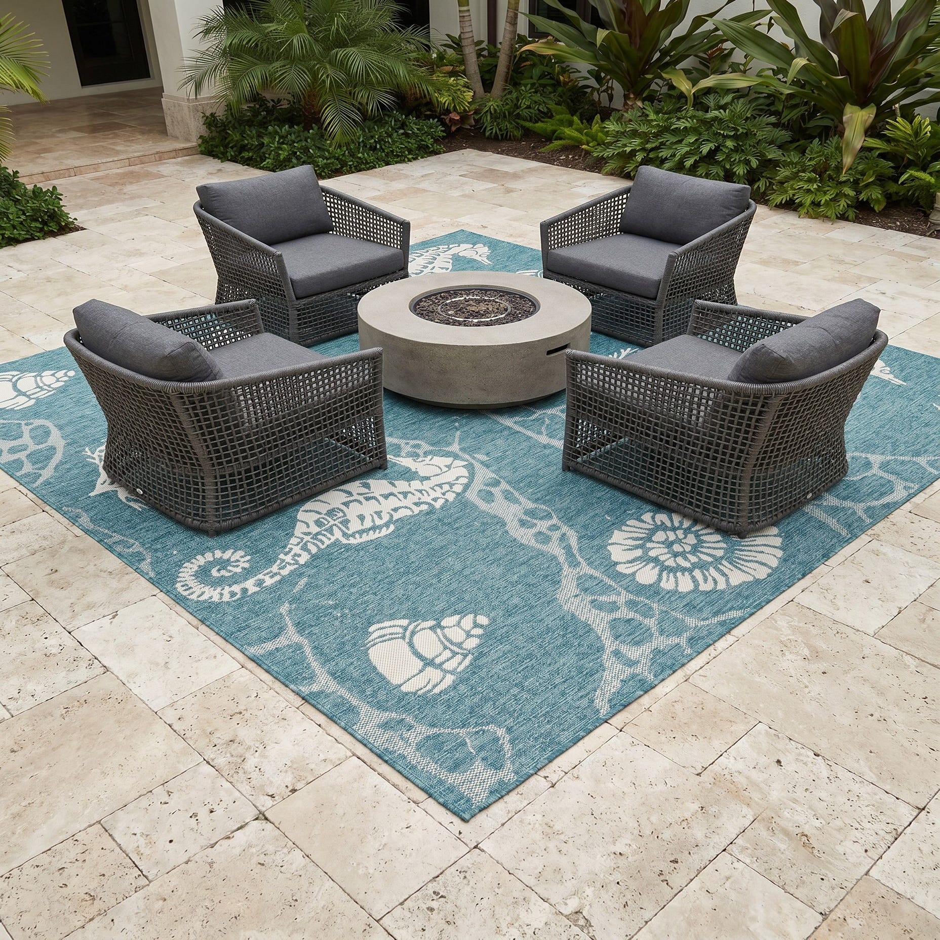 7' 10 x 7' 10 Easy-Clean Coastal Indoor / Outdoor Square Rug