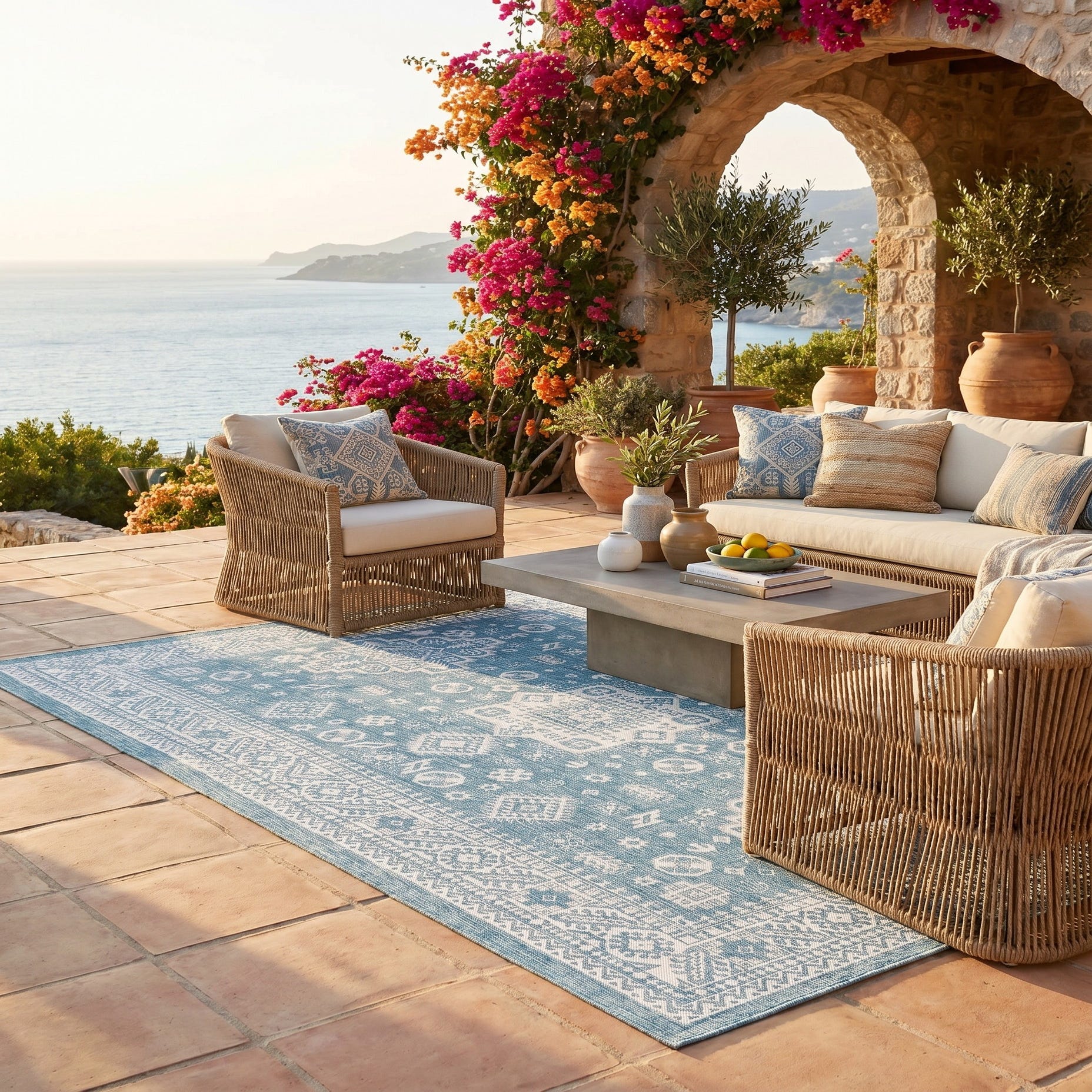 7' 10 x 11' Easy-Clean Aztec Indoor / Outdoor Rug