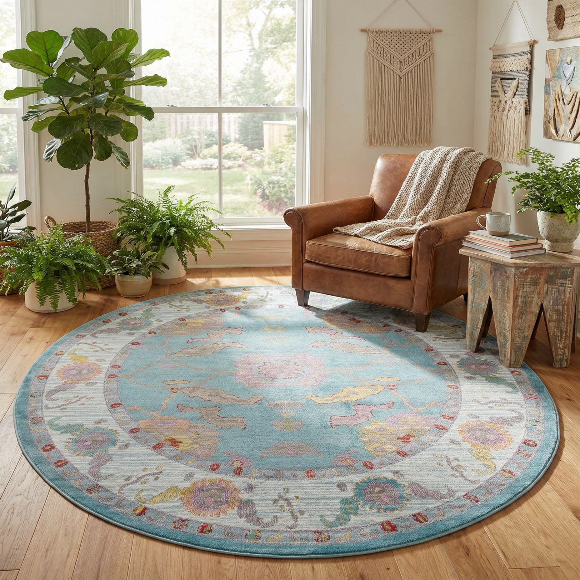 Machine-made from 100% polypropylene, the rug has a low, dense pile with a smooth, slightly lustrous finish that feels cushioned underfoot. Its oval silhouette makes it a good fit for round or curving furniture arrangements — place it beneath a round dining table, in a sunlit breakfast nook, or layered under a small seating group to soften a modern living room. It also pairs well with natural wood tones, white or cream upholstery, and eclectic accessories for a casual coastal, transitional, or bohemian-inspired space.