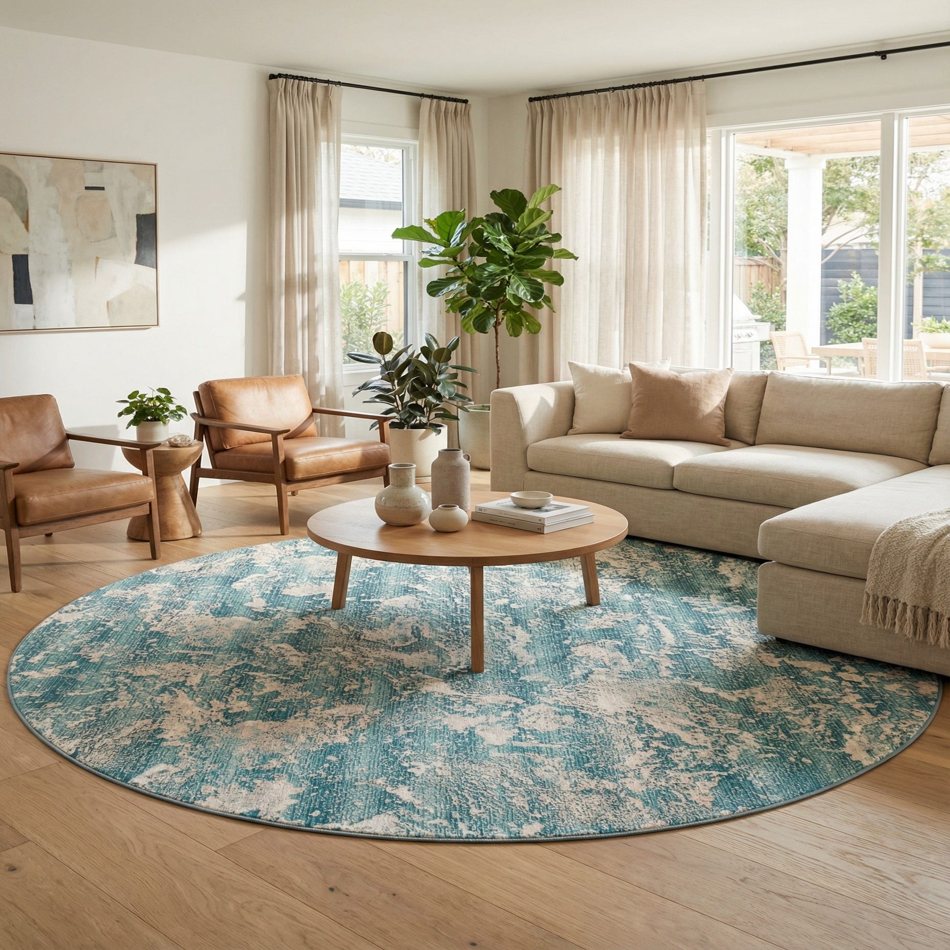 10' x 10' Washable Modern Indoor / Outdoor Round Rug
