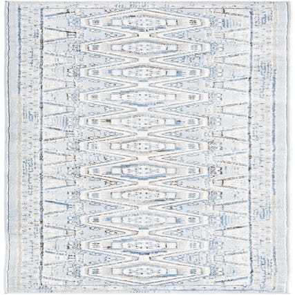 Well-suited to narrow spaces, the runner works beautifully in hallways, entryways, galley kitchens, or alongside a bed. Its Aqua Blue base pairs naturally with light wood tones and white trim, while the Beige, Ivory, Gray, and Black accents anchor coastal, cottage, and modern transitional schemes. Try it with linen upholstery, rattan or wicker accents, and matte metal fixtures to highlight the rug’s soft color palette and relaxed, lived-in character.