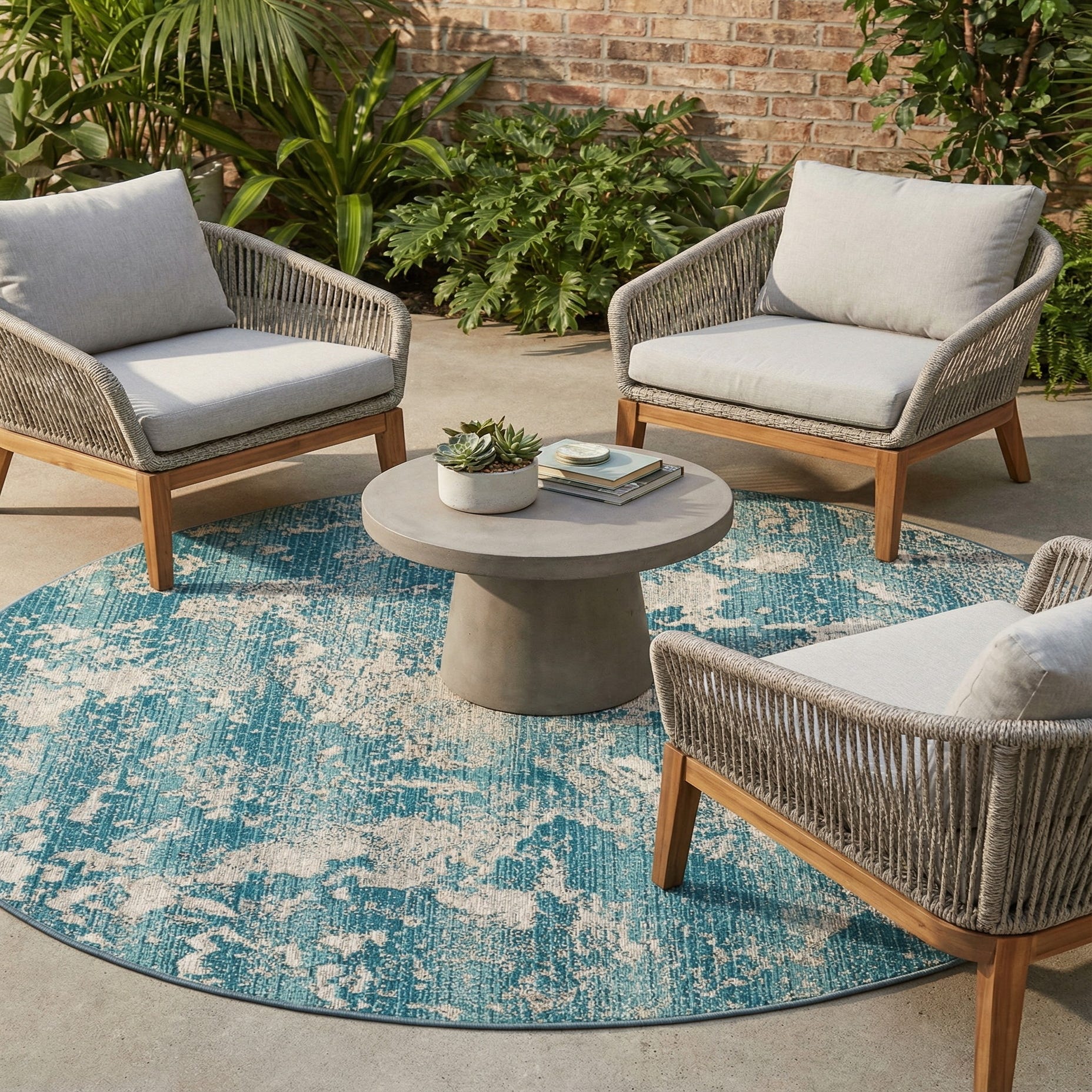 5' x 5' Washable Modern Indoor / Outdoor Round Rug