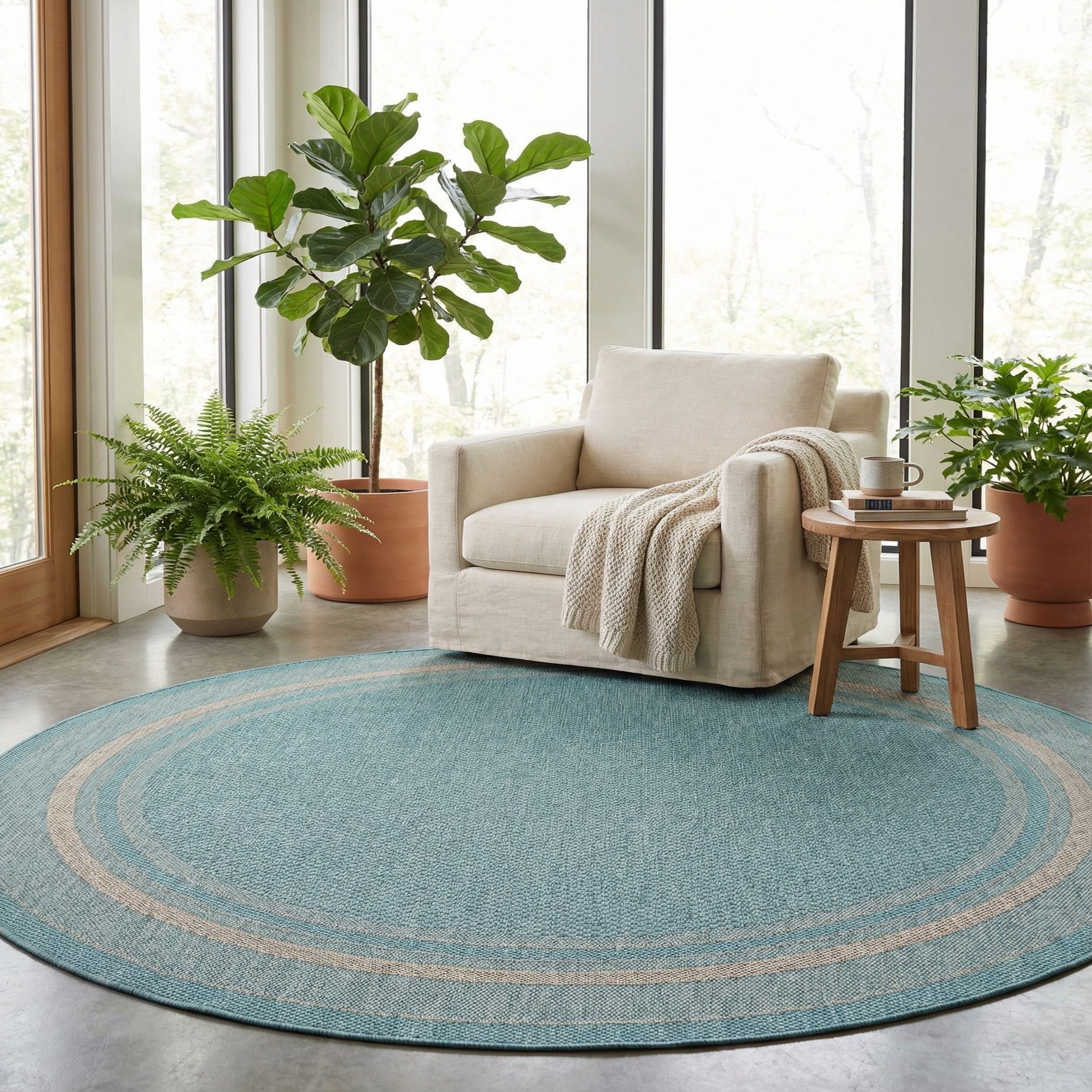 7' 10 x 7' 10 Washable Border Indoor / Outdoor Round Rug