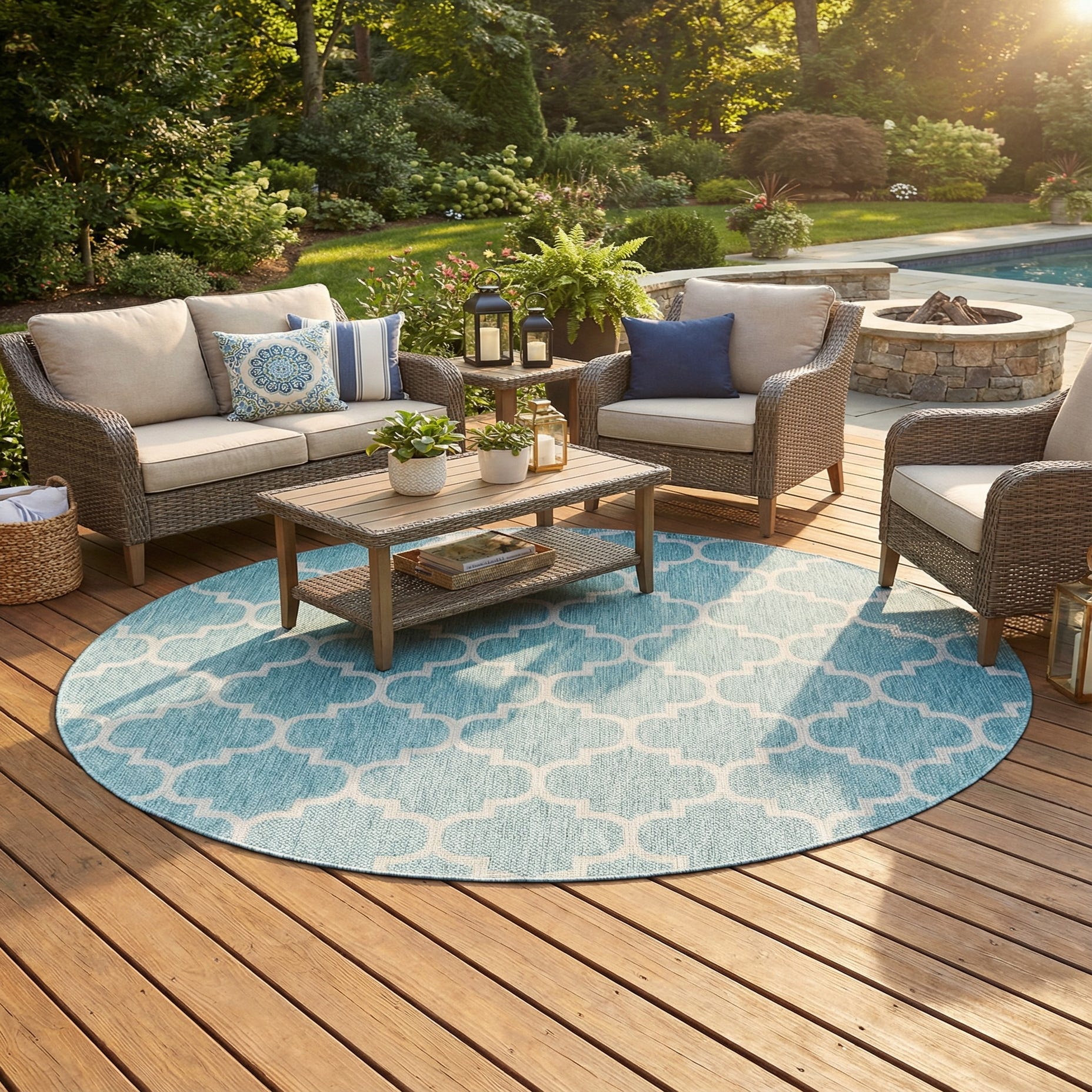 7' 10 x 7' 10 Washable Lattice Indoor / Outdoor Round Rug