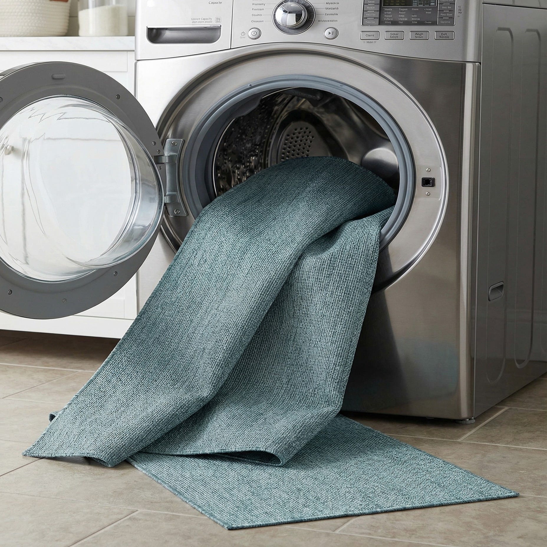 This runner is well-suited to coastal, modern, or transitional settings. Place it in a covered porch or sunroom to anchor seating, use it along a hallway or kitchen galley to add a quiet wash of color, or pair it with natural wood, rattan, and neutral linens to emphasize a relaxed, layered look. The aquamarine tone complements sandy beiges and warm woods while the beige flecks help tie together mixed materials and muted color palettes.