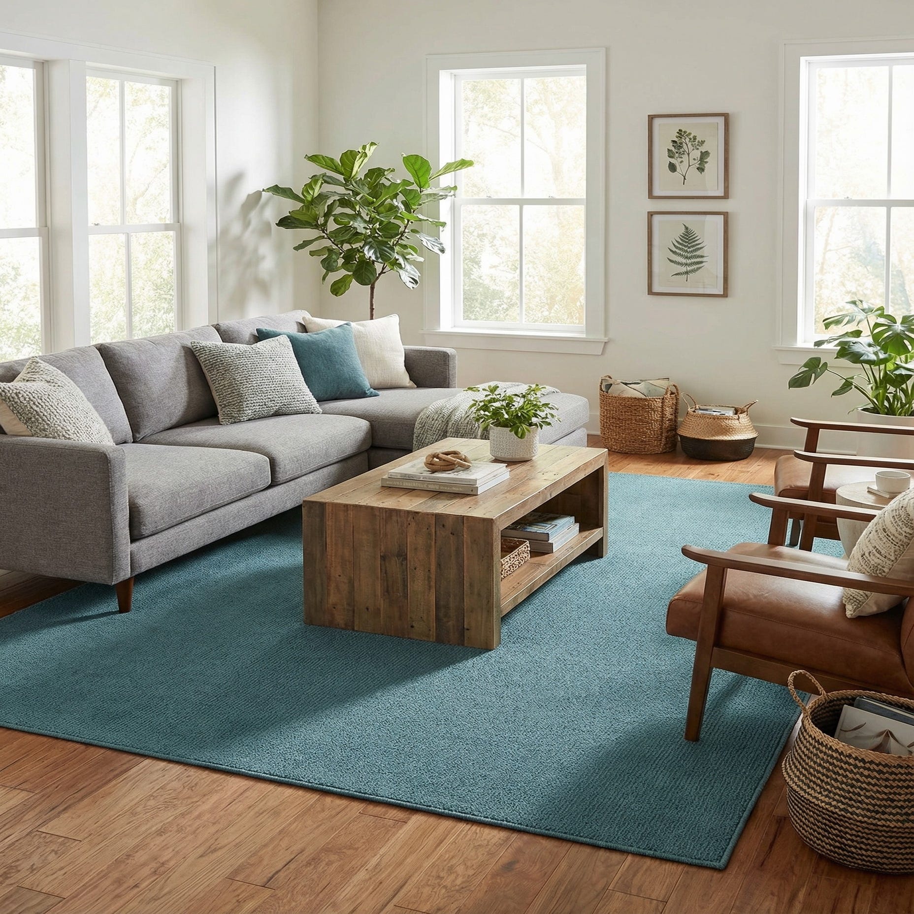 Bought this to go under our dining room table. It’s soft the color is nice and it grips the wood floors well. Goes with our stuff. Good value.