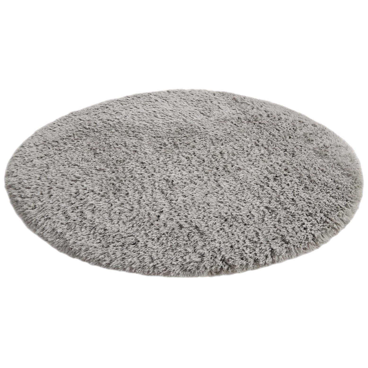 A soft, uniform shag in a clean ash tone gives this round rug a calm, monochromatic look. The surface is made from 100% polyester and machine-made into a dense, long-pile texture that cushions underfoot while maintaining a simple, contemporary silhouette. Rather than a printed motif, the design relies on pile direction and depth to create subtle, tone-on-tone variation across the face of the rug.